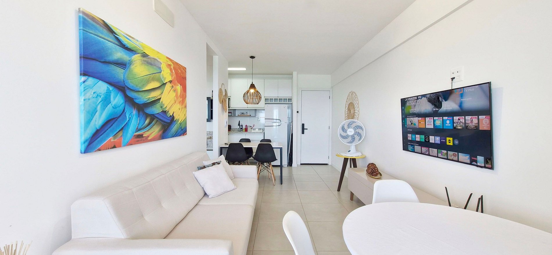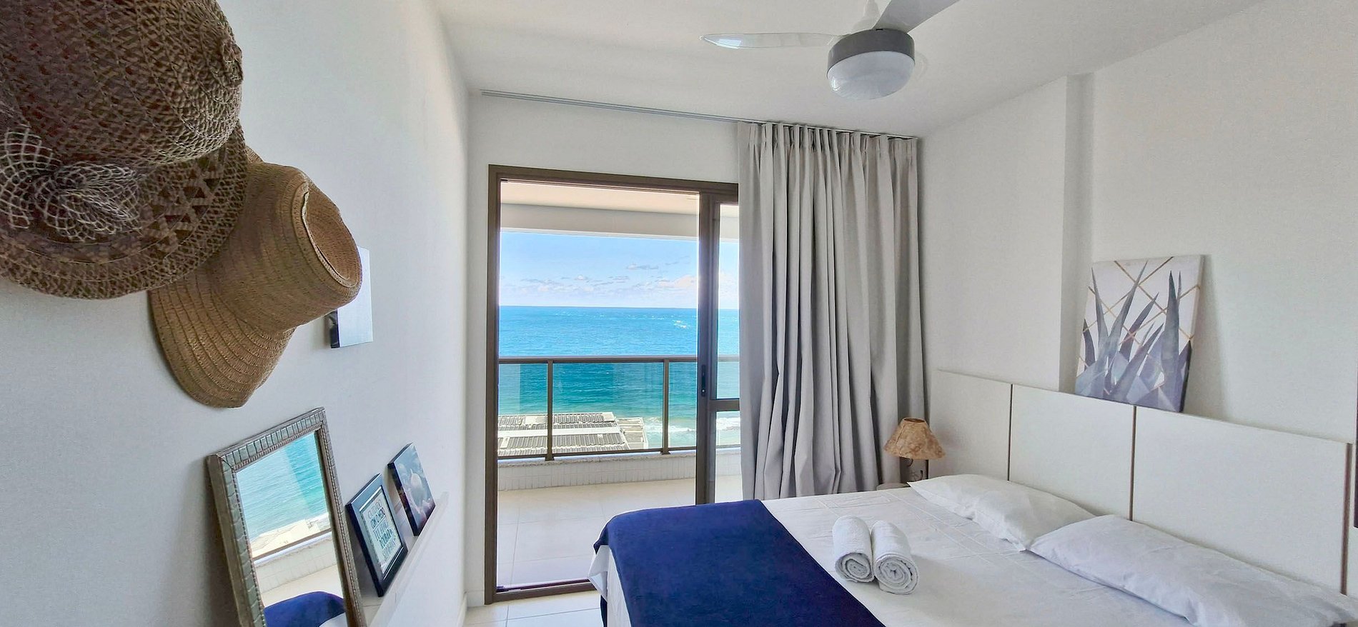 Beautiful apartment with a balcony and incredible sea views in a refined condominium in Barra! Close to the Barra-Ondina Carnival circuit! Spacious living room, table with 4 chairs, sofa, smart TV, Wi-Fi. Bedroom with double bed, blackout curtains, and split air conditioning. Equipped kitchen. Building with swimming pool, gym, garage with vehicle charger, and 24-hour reception. An unforgettable experience!