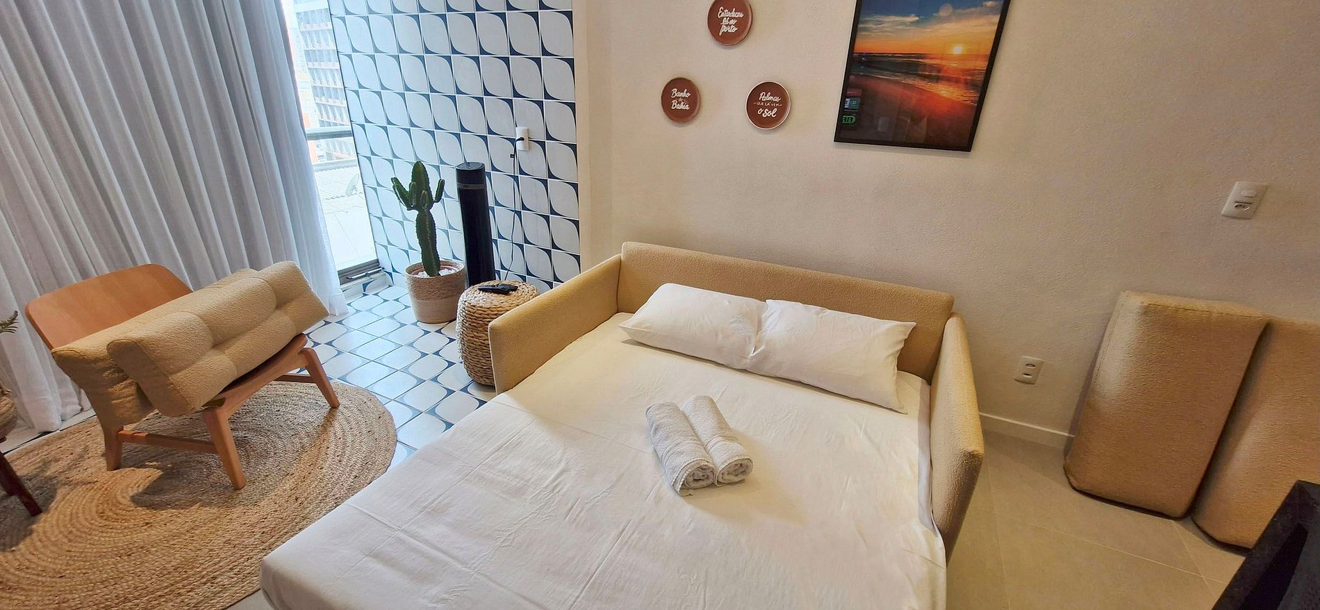 Hermoso apartamento de una habitación, cerca del Centro Comercial Barra y del circuito del Carnaval. Una suite con aire acondicionado, sala de estar con sofá cama doble (ver fotos), Smart TV, wifi y cocina. Incluye plancha y secador de pelo. Ubicado en un moderno condominio en Barra, con piscina, sauna y gimnasio en la planta superior. Cuenta con sala de estar con lavandería OMO (pago directo a través de la aplicación) y mesa de billar, espacio de coworking con sala de reuniones, garaje rotativa