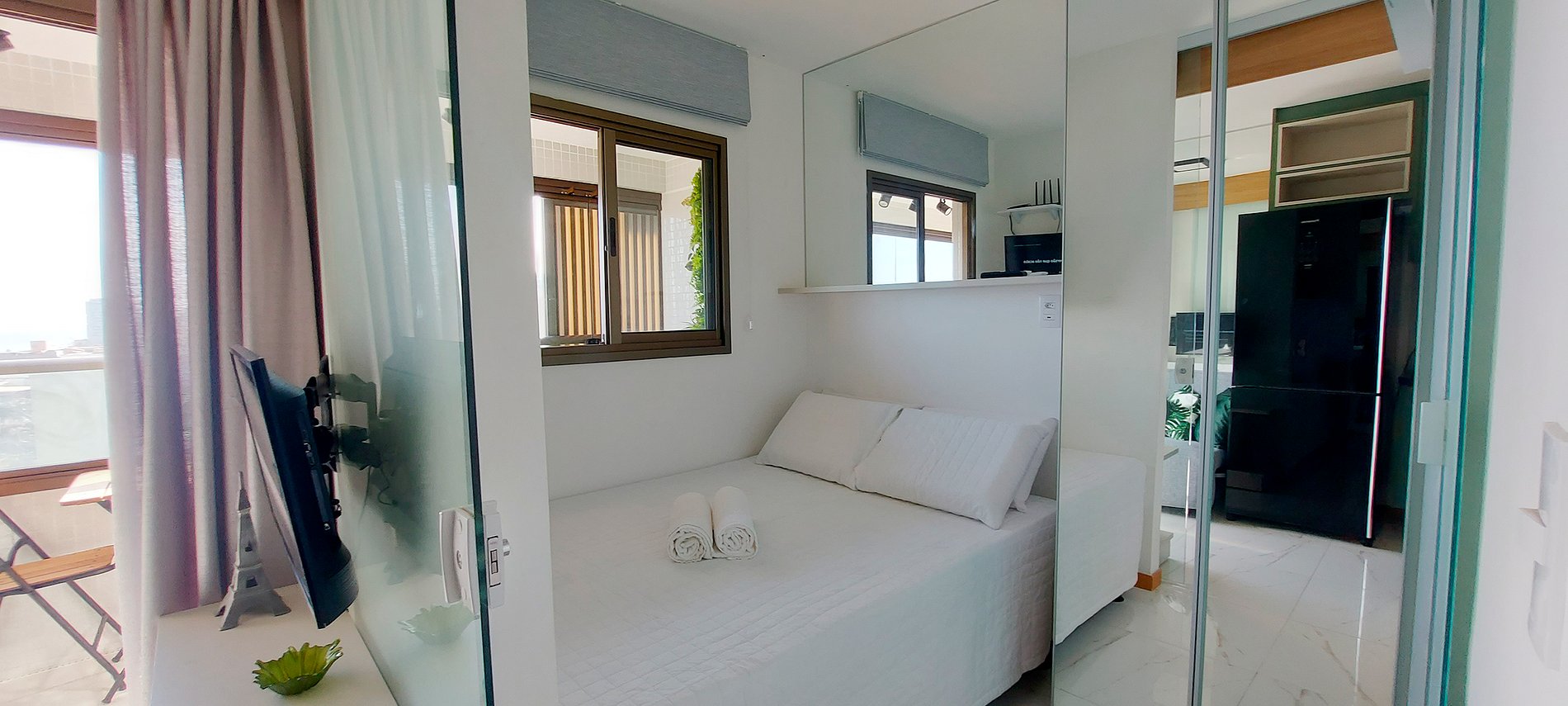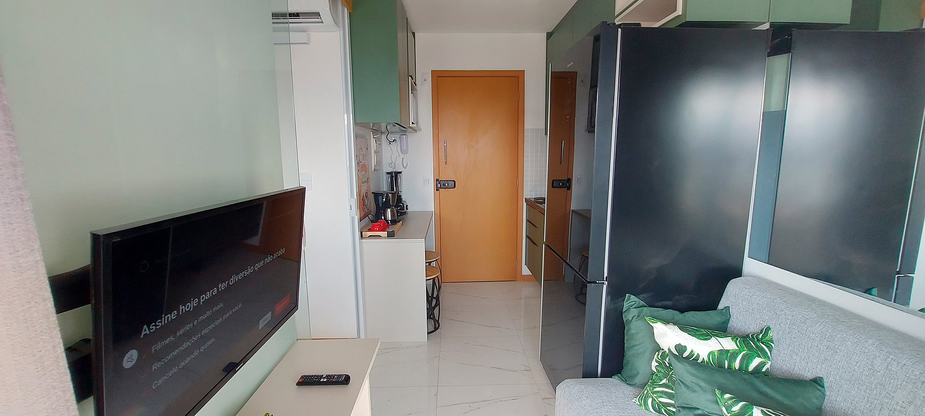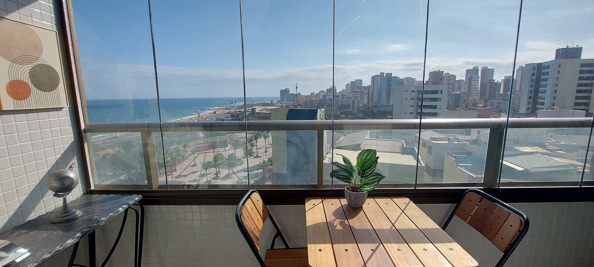 ¡Dormitorio y sala de estar con vista al mar, nuevos y bien decorados en Costa Azul! Con cama de matrimonio, smart TV en salón y dormitorio, sofá cama doble (ver fotos del mismo abiertas antes de reservar), aire acondicionado split y cocina completa. Condominio con conserje las 24 horas, gimnasio, piscina y lavandería (se paga aparte).
