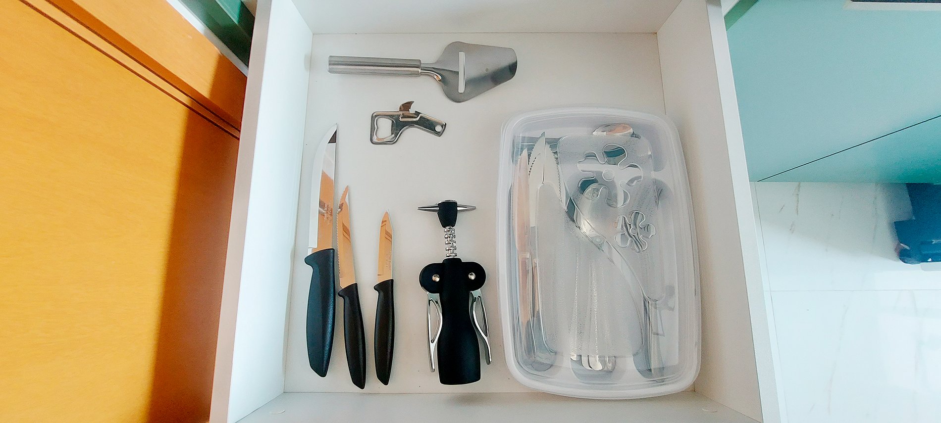 - Cocina completa con frigorífico duplex, vitrocerámica de 2 fuegos, filtro de agua, banca con dos taburetes, cafetera eléctrica, microondas, sandwichera, batidora, airfryer (es importante mantener la tabla de madera debajo al utilizarla para evitar que se caliente) y Artículos básicos de cocina para el hogar.