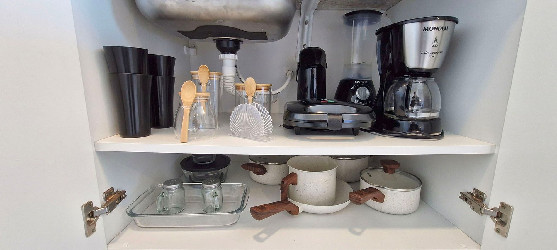 - COCINA: refrigerador dúplex, sandwichera, cafetera eléctrica, termo, licuadora, microondas, placa de inducción de dos fuegos, filtro de agua, ollas, sartenes, cubiertos, vasos, tazas y diversos accesorios de cocina.