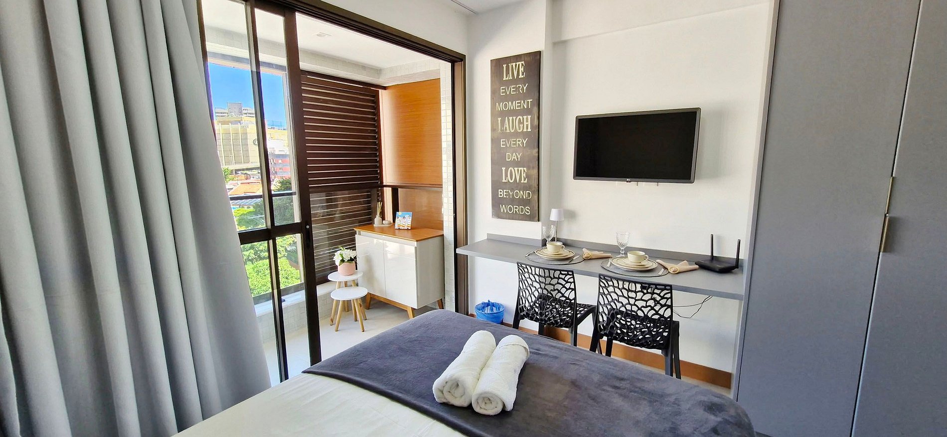 Muy cerca del centro comercial Barra Shopping Mall y del Carnaval. Cuenta con cama doble, smart TV con antena local, wifi, aire acondicionado, cocina y balcón. En la azotea encontrará piscina, gimnasio, garaje y recepción 24h. También dispone de sala de juegos y espacio de coworking. Lavandería y minimercado disponibles por un suplemento.