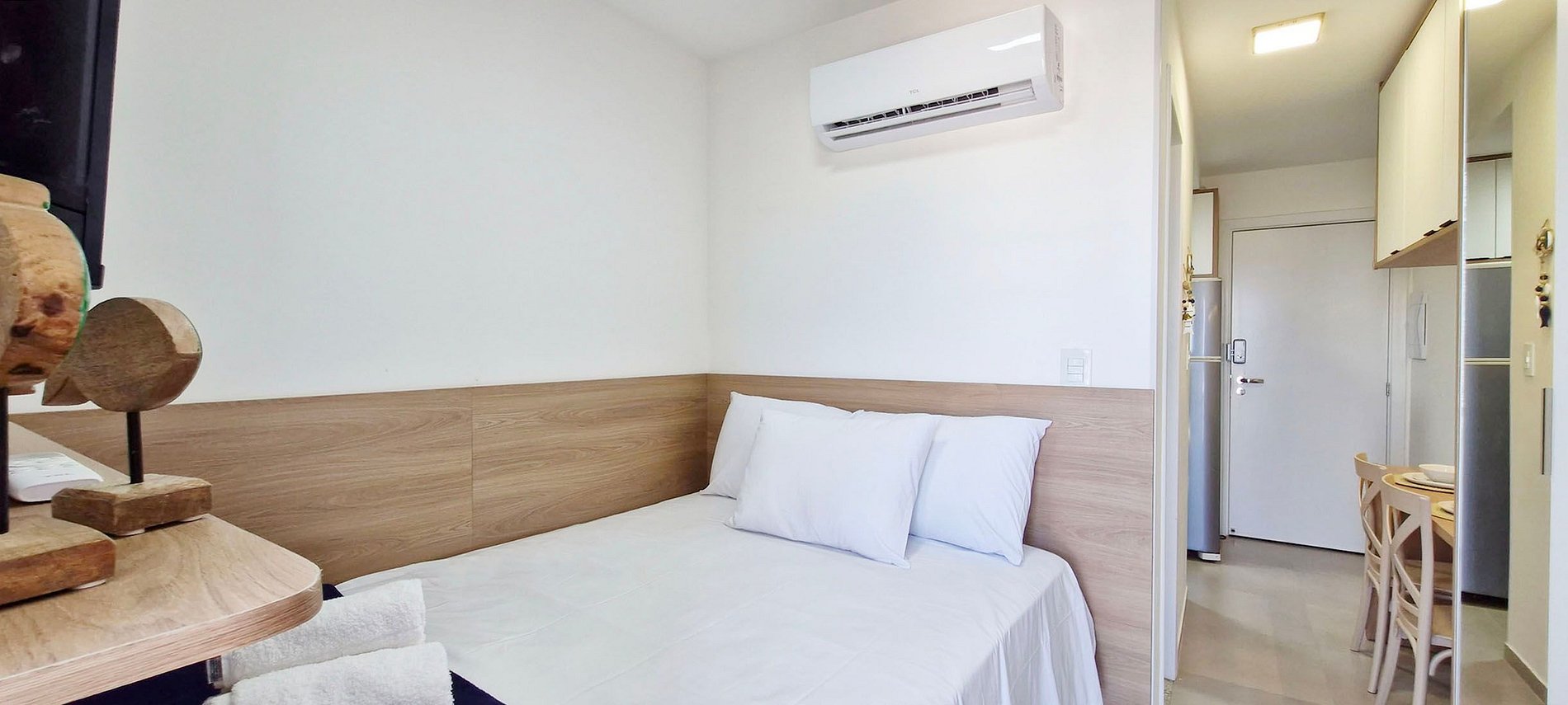 Cuenta con cama de matrimonio, Smart TV, wifi y aire acondicionado. Azotea con piscina y gimnasio, espacio de coworking. Lavandería está disponible por un suplemento. Plaza de aparcamiento rotativa. Recepción 24 horas.