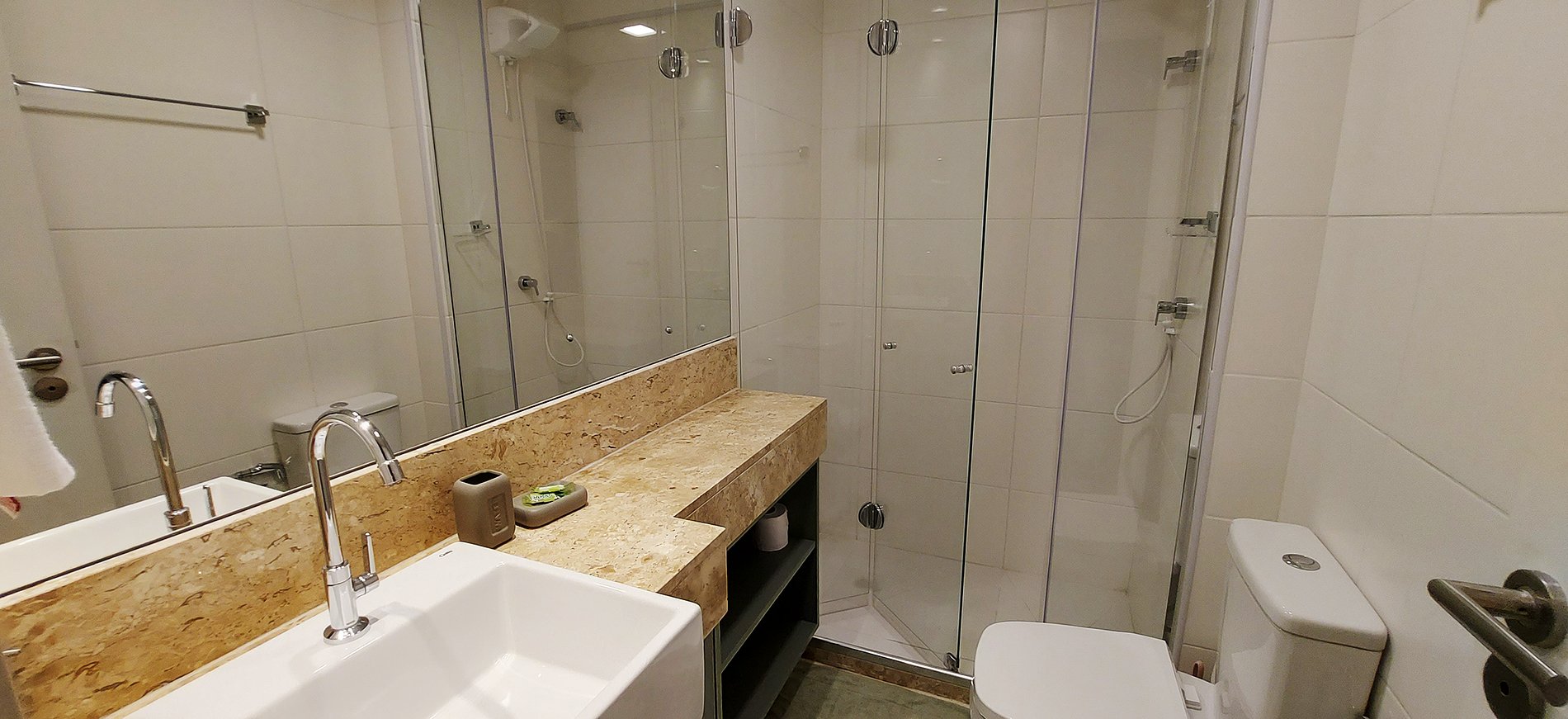 • No se pueden arrojar residuos sólidos al inodoro (incluido papel higiénico), le solicitamos que utilice el contenedor provisto. De lo contrario, el inodoro podría obstruirse y cobraremos R$ 150 para desatascarlo.