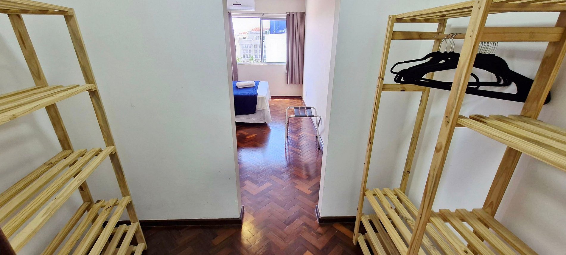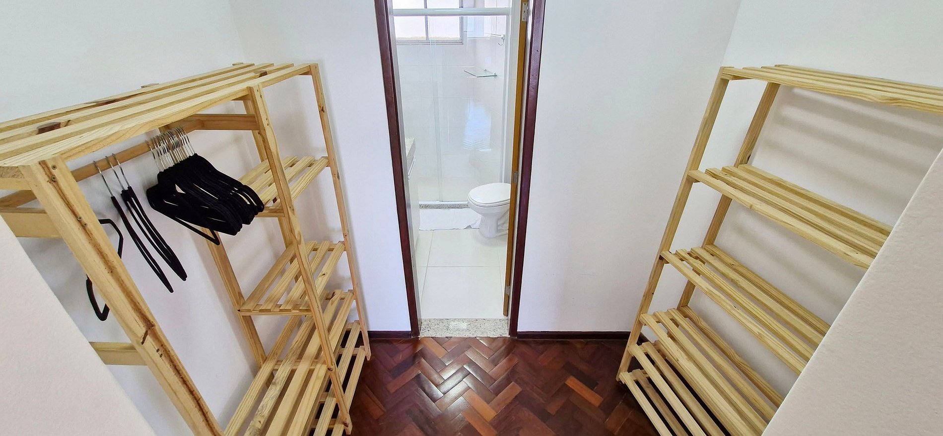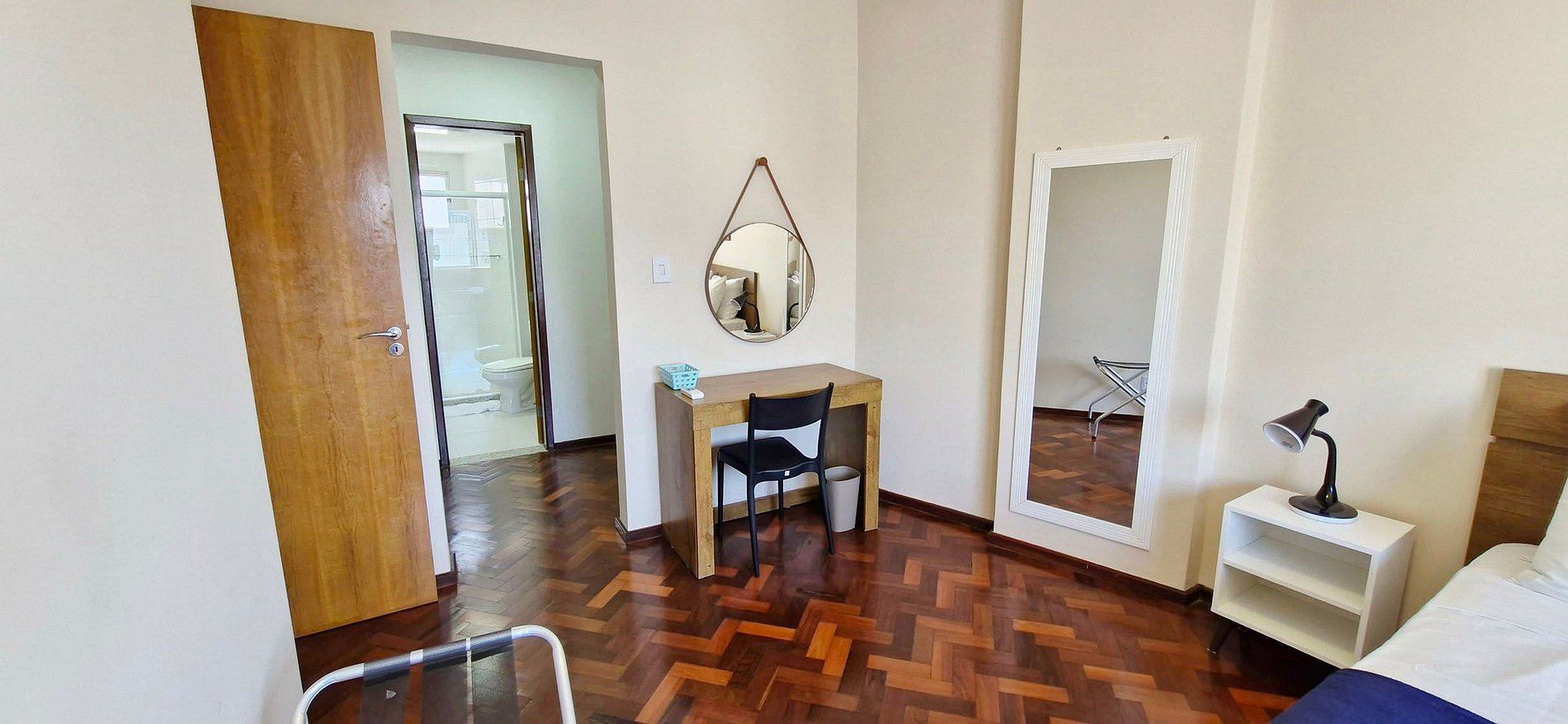 - Suite 1: 1 cama queen, 2 mesitas de noche, lámpara, 1 escritorio con silla, espejo grande, ropero abierto para ropa, cortinas blackout, aire acondicionado split y baño con ducha eléctrica y secador de pelo