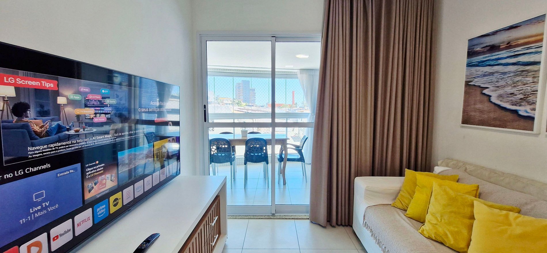 Hermoso apartamento frente al mar en un condominio en la playa de Piatã. ¡Está en la playa justo enfrente! La propiedad está elegantemente decorada e incluye Smart TV, wifi, aire acondicionado y lavadora. También cuenta con un balcón gourmet totalmente equipado. El dormitorio cuenta con una cama doble con masaje y un colchón individual adicional para colocar en el suelo. El condominio ofrece piscina con cascada y vistas al mar, gimnasio y seguridad las 24h.