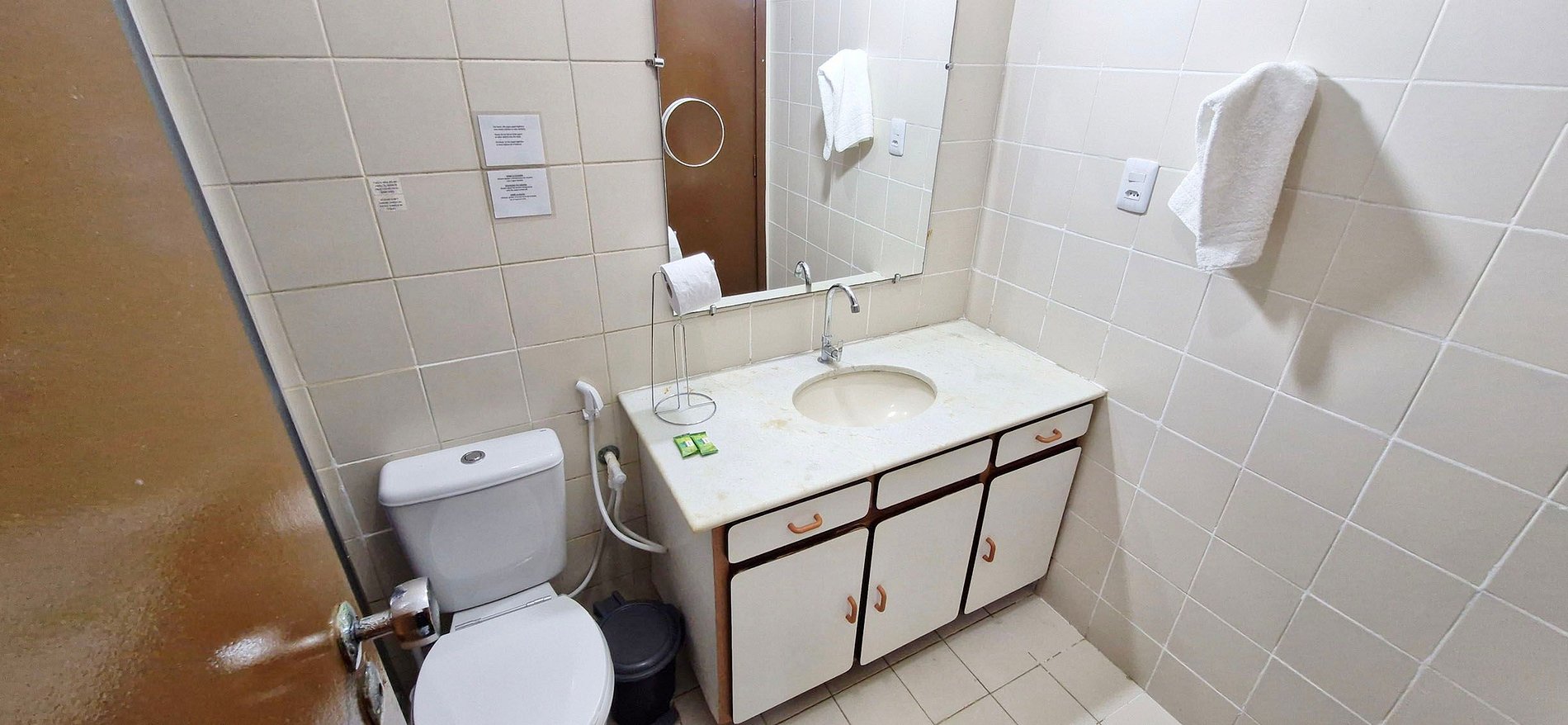 • No se pueden tirar residuos sólidos al inodoro (incluido el papel higiénico), le pedimos que utilice el contenedor de basura provisto. De lo contrario, el inodoro puede obstruirse y cobramos R$ 150 por desatascarlo.