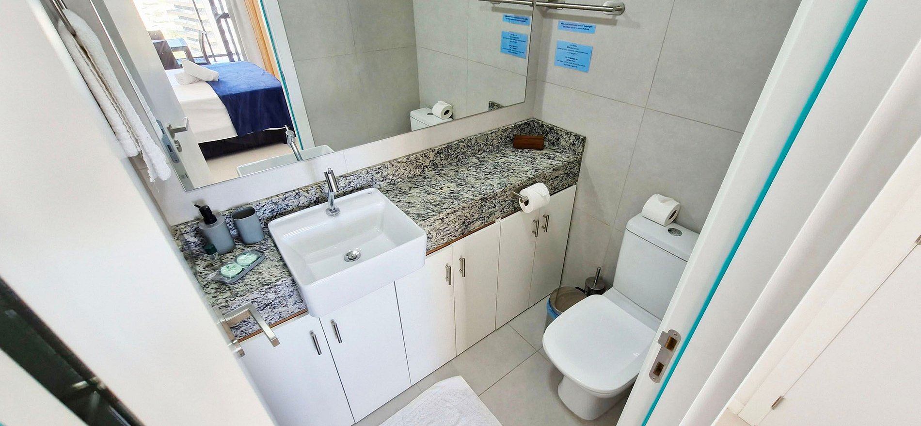 • No se pueden tirar residuos sólidos por el inodoro (incluido el papel higiénico); utilice el cesto de basura proporcionado. De lo contrario, el inodoro podría obstruirse y se cobrará un cargo de R$ 150 por desatascarlo.