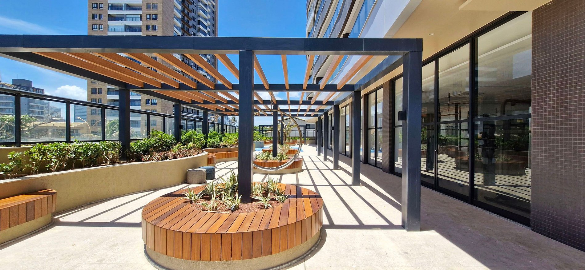 - Los huéspedes pueden disfrutar de la piscina, el gimnasio, el parque infantil y el espacio de coworking del edificio