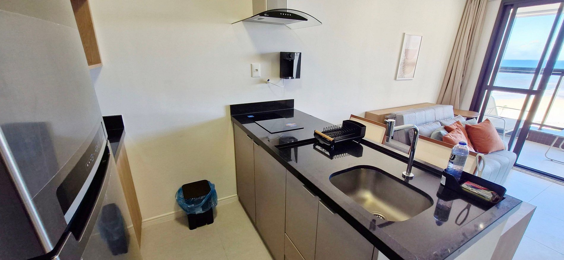 Al lado del supermercado y Mc Donald's! Edificio con piscina para adultos y niños, gimnasio, coworking, parque infantil, garaje rotatorio y recepción 24h. Habitación con cama doble y aire acondicionado split. Sala con sofá cama doble, aire acondicionado split, smart TV. Balcón con vista al mar. WI-FI, cocina completa. Secador de pelo y plancha.