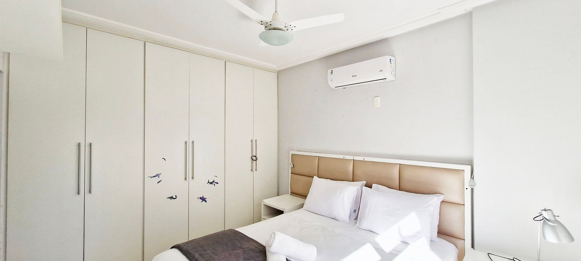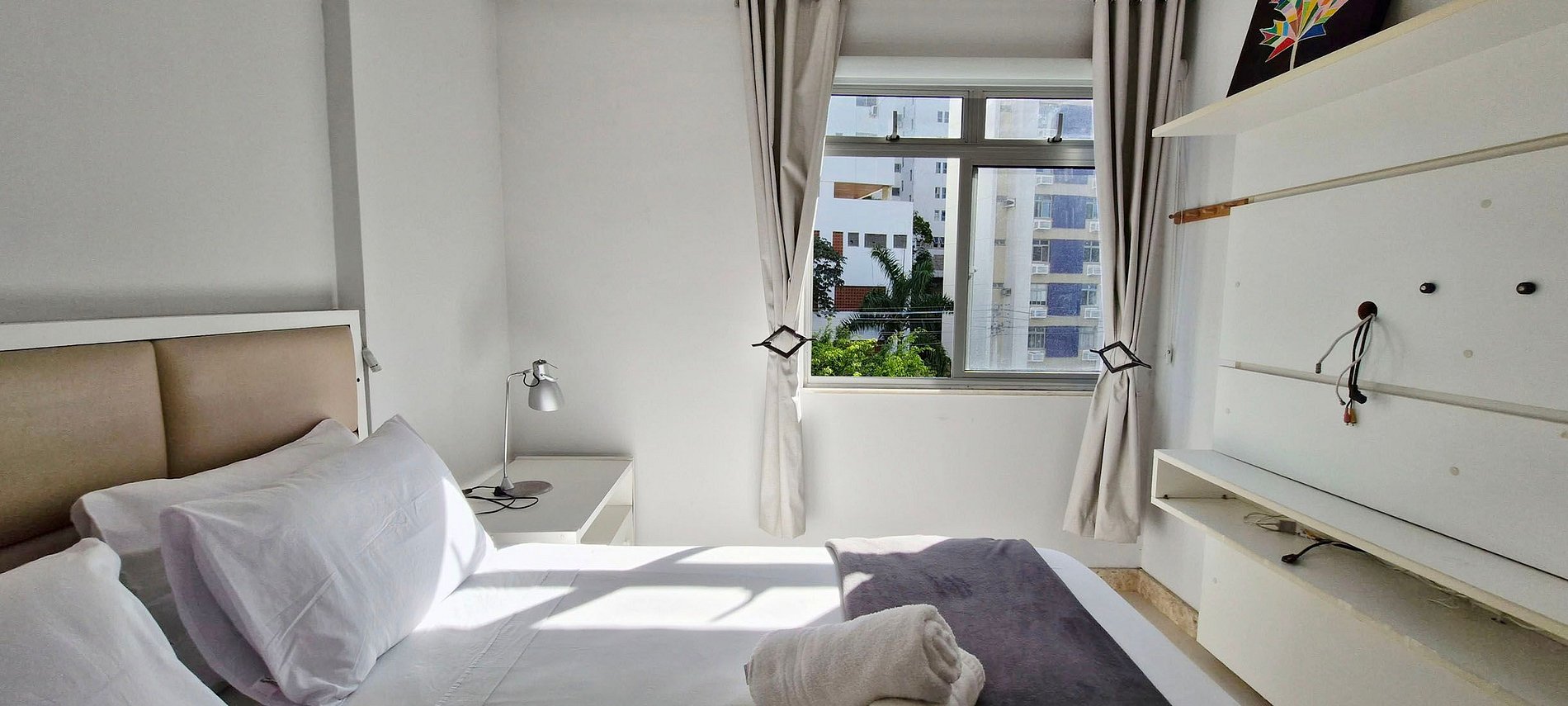 Apartamento amplio con balcón en el Circuito del Carnaval. Edificio ubicado en Jardim Apipema y cerca del Shopping Barra. Cuenta con aire acondicionado split en la suite y ventilador de techo en el segundo dormitorio y en la oficina. Sala de estar con TV y chromecast, WI-FI de alta velocidad. Balcón con hamaca. Cocina completa y área de servicio con lavadora.