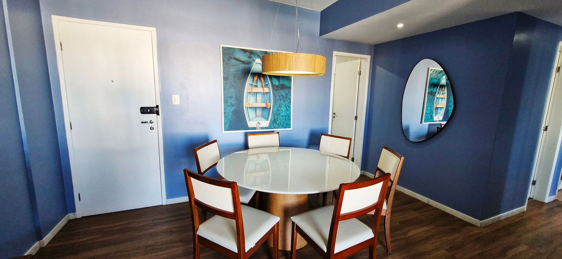 - COMEDOR: mesa redonda con 6 sillas, espejo.