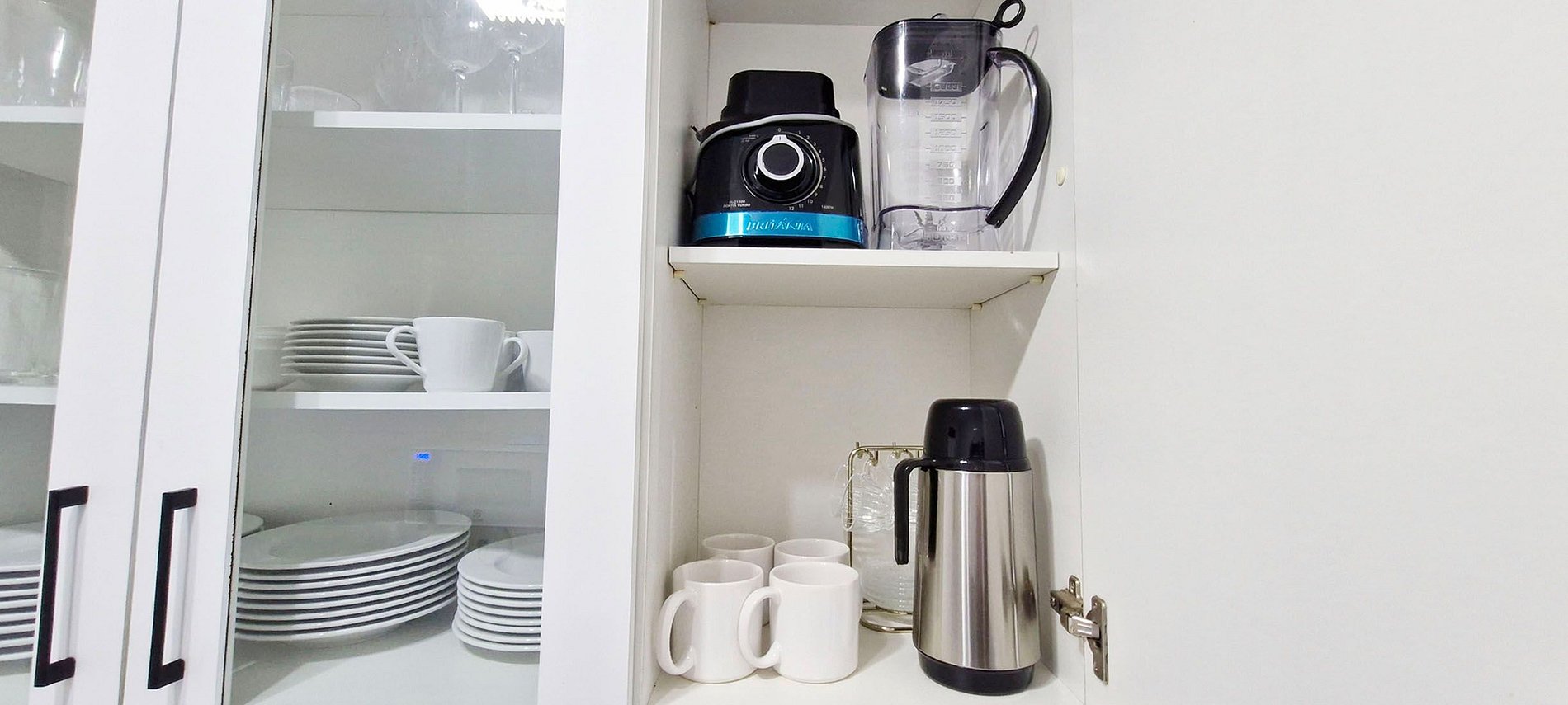 - COCINA: refrigerador duplex, sandwichera, cafetera eléctrica (USAR SÓLO CON TRANSFORMADOR), termo, licuadora, microondas, cocina de gas de cuatro hornallas, extractor de aire, horno eléctrico, filtro de agua, ollas, cubiertos, vasos y utensilios de cocina variados.