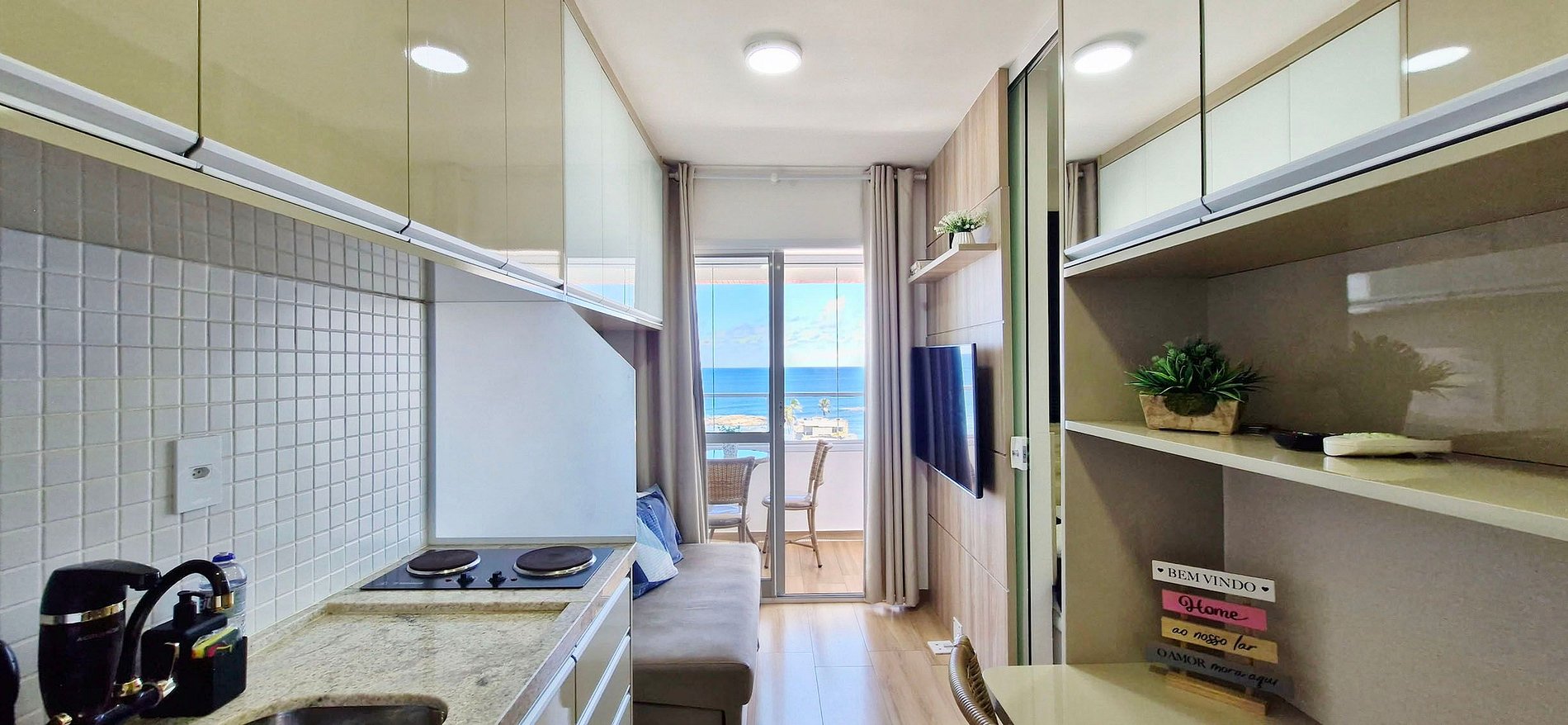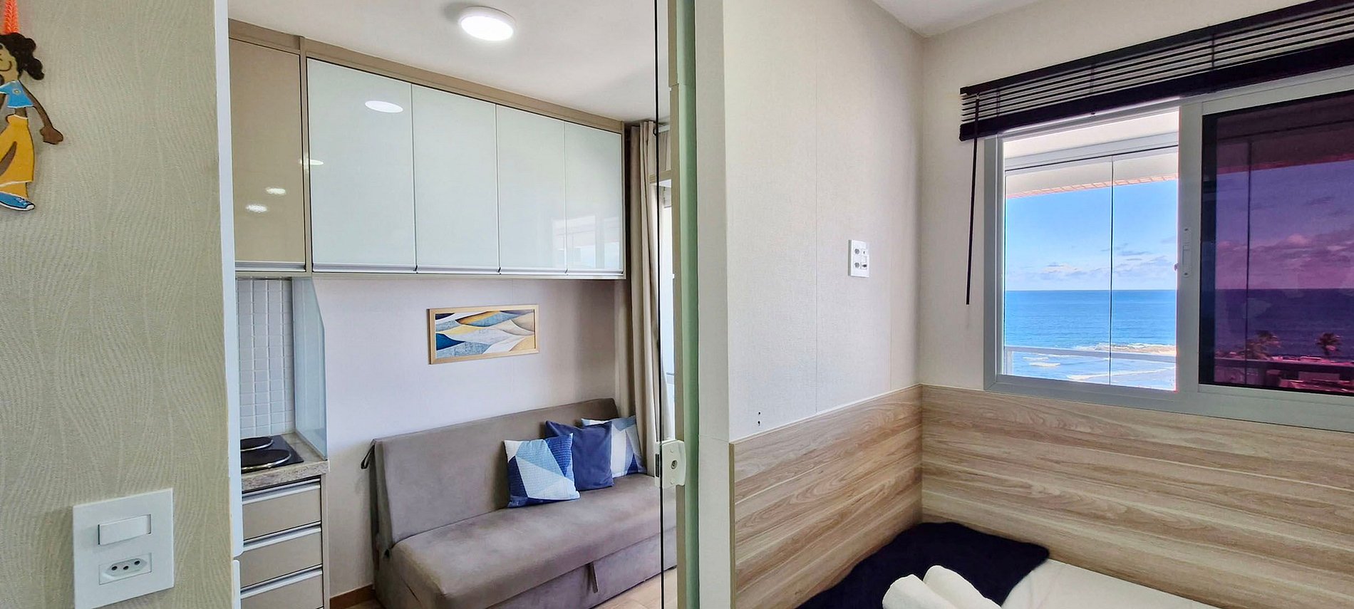 Ubicado en el edificio Smart Pituba, podrás ir caminando al Largo de las bahianas de acarajé de Amaralina, restaurantes, bares, mercados, panadería, centro comercial y farmacia. Apartamento con balcón y vista al mar.