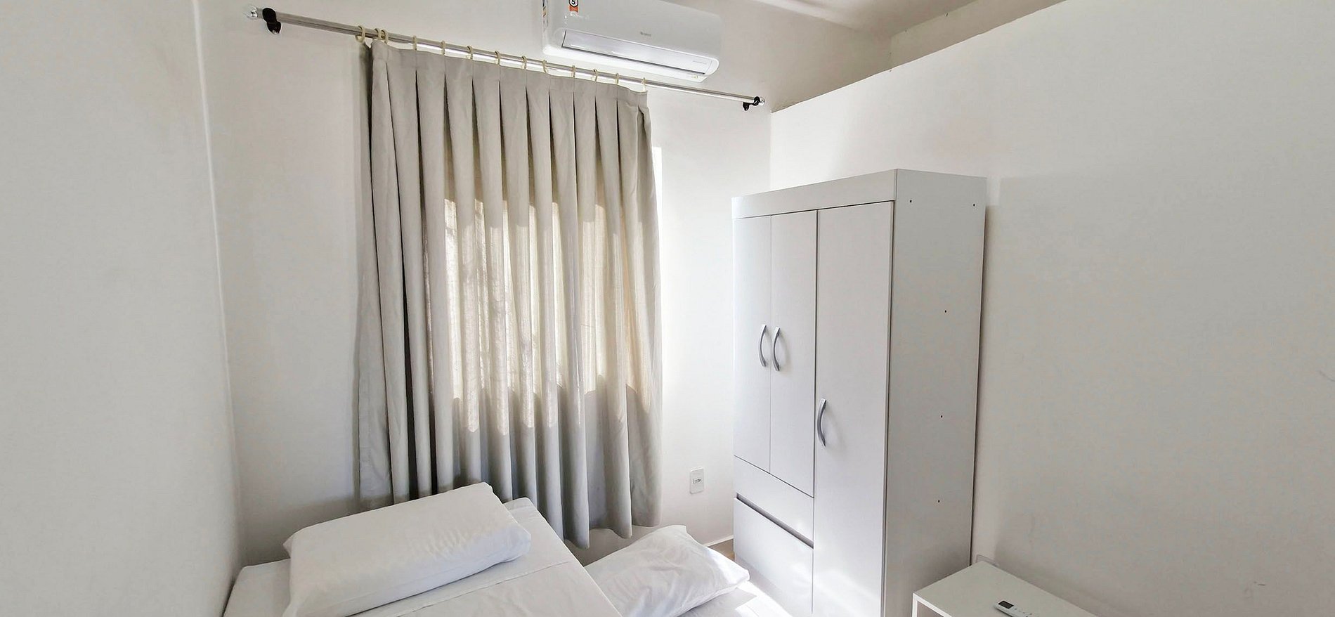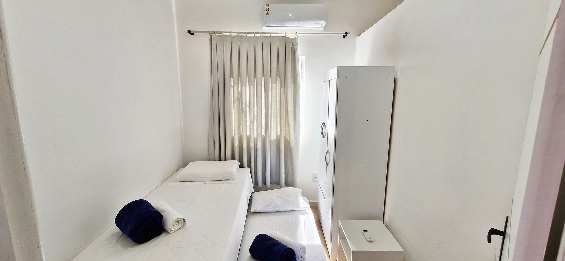 - Habitación con cama individual tipo nido, armario, mesa de noche, aire acondicionado split y cortina (NO ES BLACKOUT).