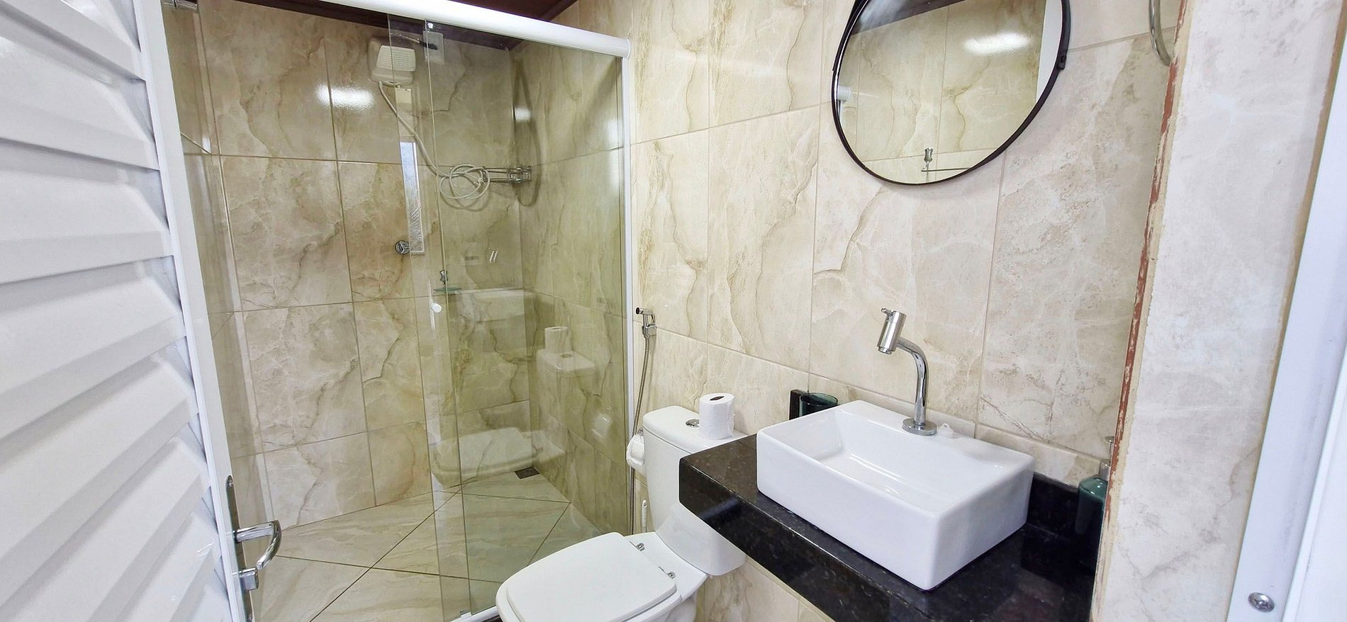• No se pueden arrojar desechos sólidos por el inodoro (incluido el papel higiénico), use el contenedor provisto. De lo contrario, el inodoro podría atascarse y cobramos BRL 150 para desatascarlo.