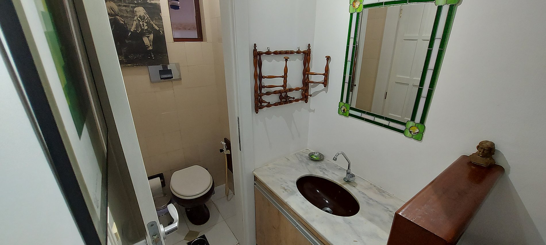 Amplio y ventilado apartamento frente a la famosa playa de Buracão en Rio Vermelho. Está en el segundo piso, decorado con muebles antiguos de estilo rústico y con amplias habitaciones. Salón con smart TV y canales, WI-FI, hamaca, cocina con zona de lavado, sala de lectura, 1 suite con colchón individual extra y un dormitorio doble.