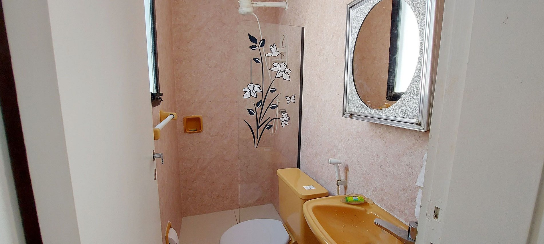 • No se pueden tirar residuos sólidos al inodoro (incluido el papel higiénico), le pedimos que utilice el contenedor de basura provisto. De lo contrario, el inodoro se bloquea rápidamente y cobramos R$ 150 por desatascarlo.