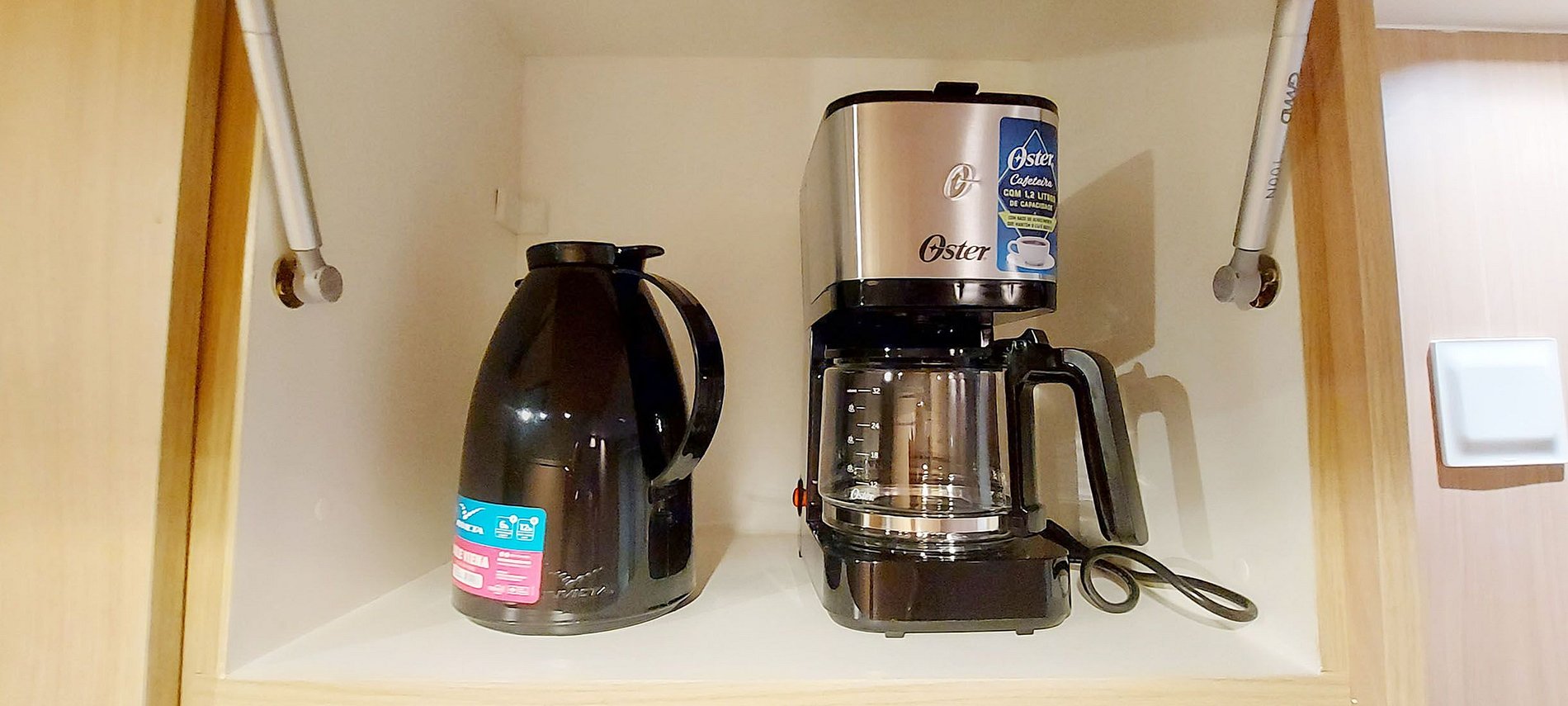 - Cocina con filtro de agua, sandwichera, cafetera eléctrica, frigorífico, microondas, batidora, placa de inducción de dos fuegos, purificador de aire, accesorios diversos de cocina y utensilios de limpieza.