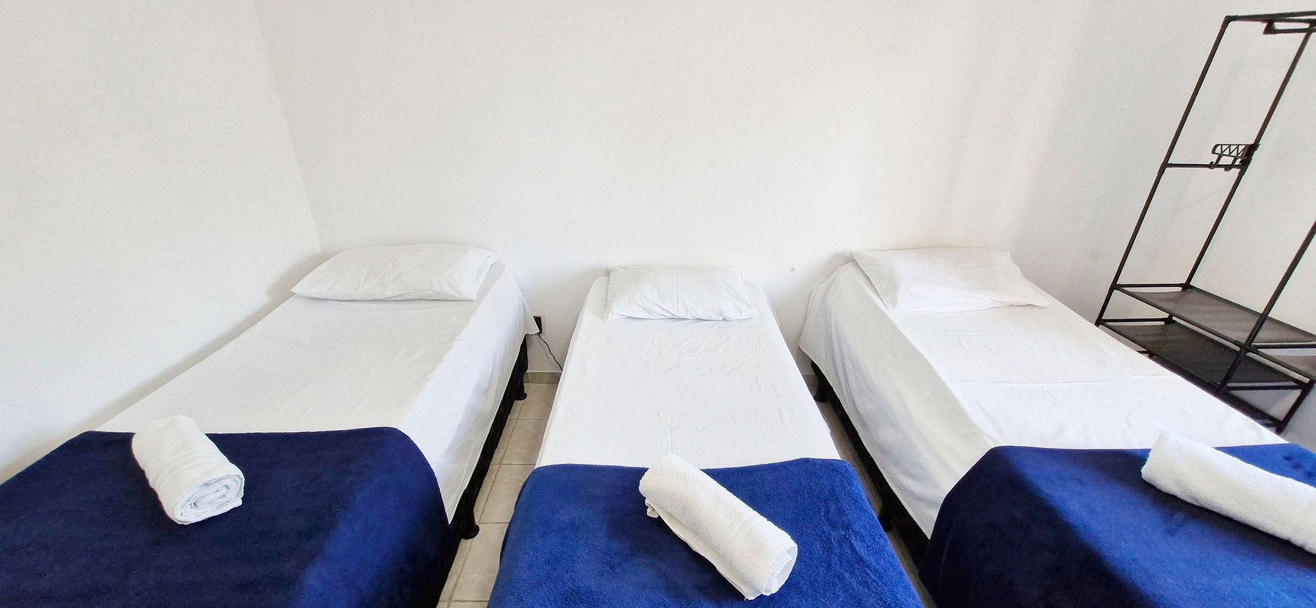 - 3 camas individuales, ventilador de techo, armario abierto, plancha, cortinas opacas, red de seguridad