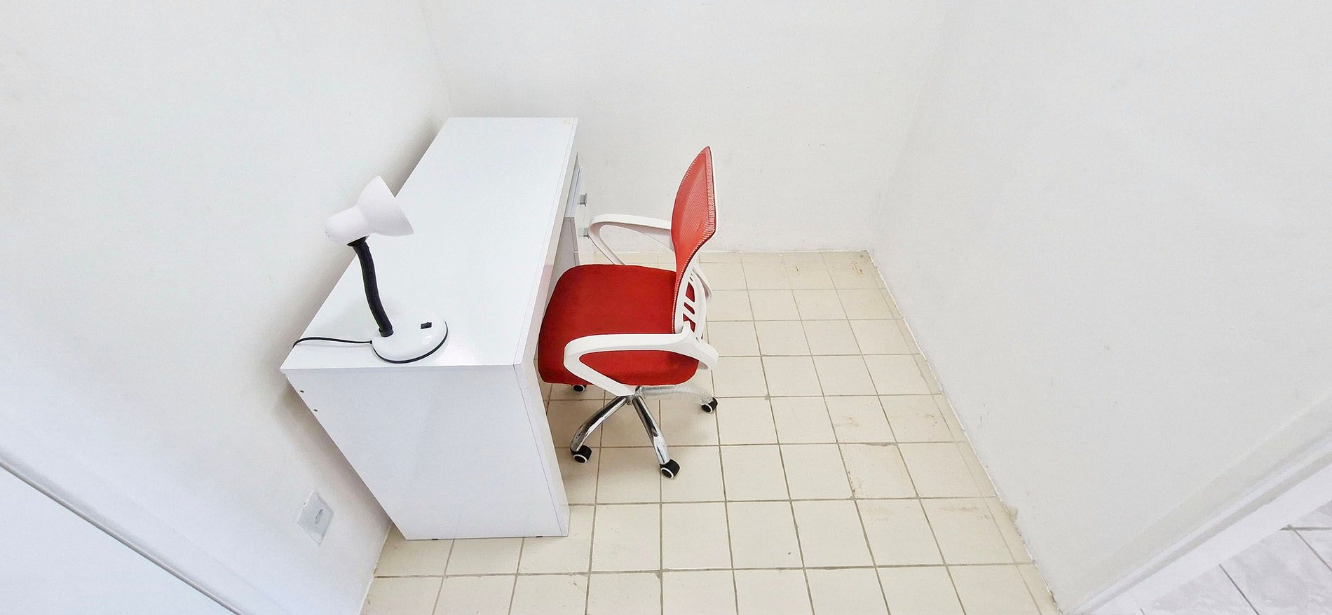 - Escritorio, silla de oficina, ventilador de techo