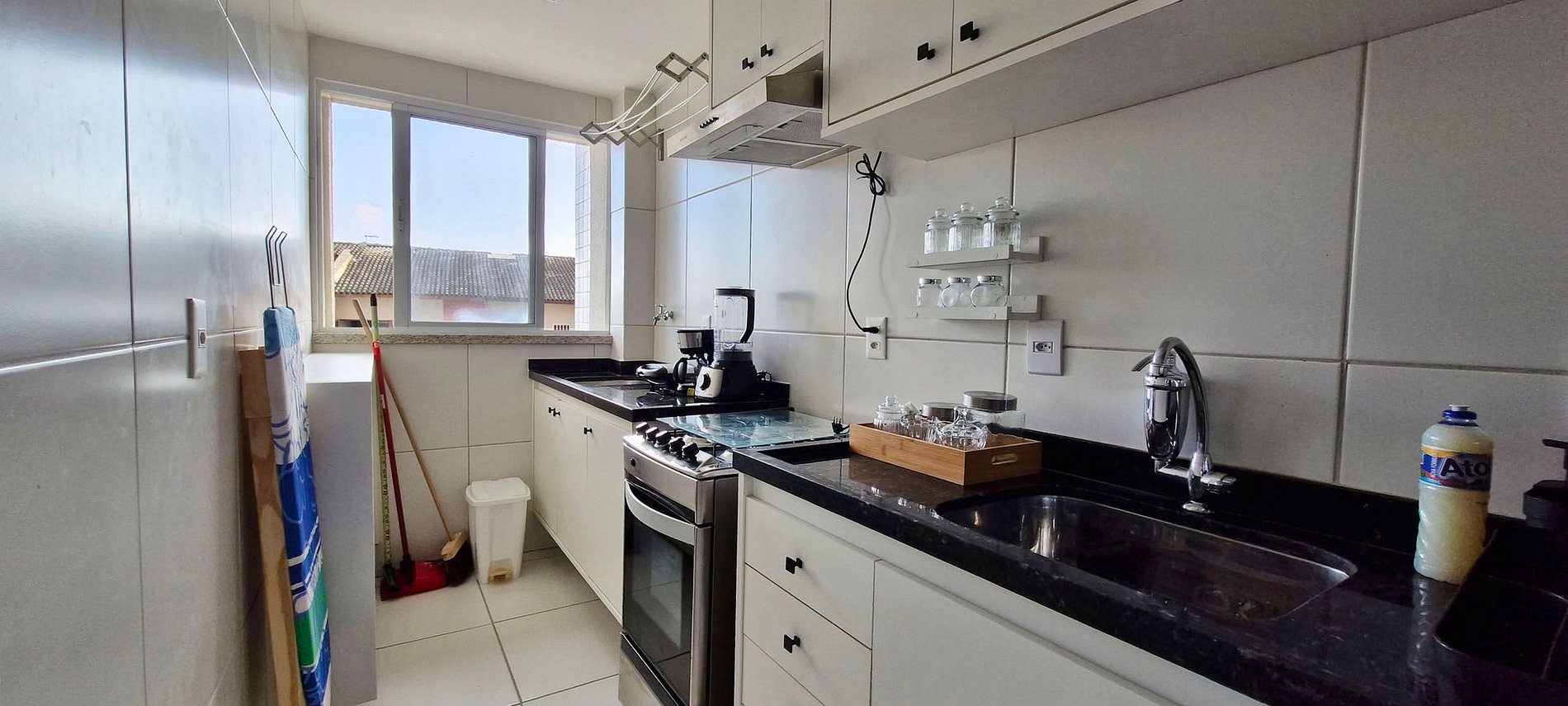 - Filtro de agua, sandwichera, cafetera eléctrica, refrigerador de dos puertas Microondas, estufa, purificador de aire, licuadora, ollas, vasos, tazas y utensilios de cocina.