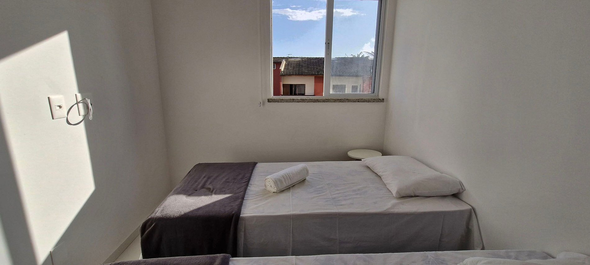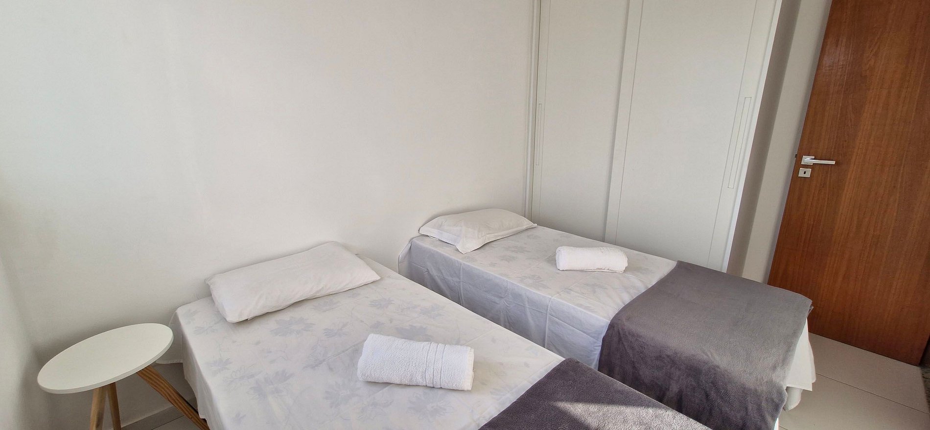 - 2 camas individuales, aire acondicionado split, cortinas opacas, mesa auxiliar redonda, armario, ventilador de techo