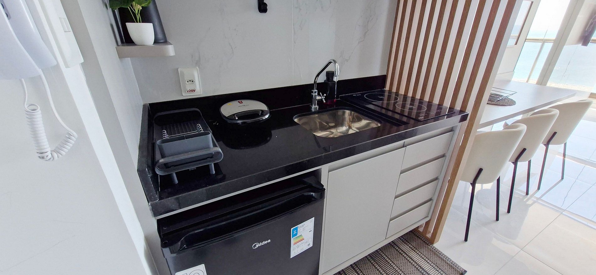 - COCINA: sandwichera, cafetera eléctrica, minibar, termo, batidora, airfryer, cocina de inducción de dos fuegos, purificador de aire y accesorios varios de cocina..