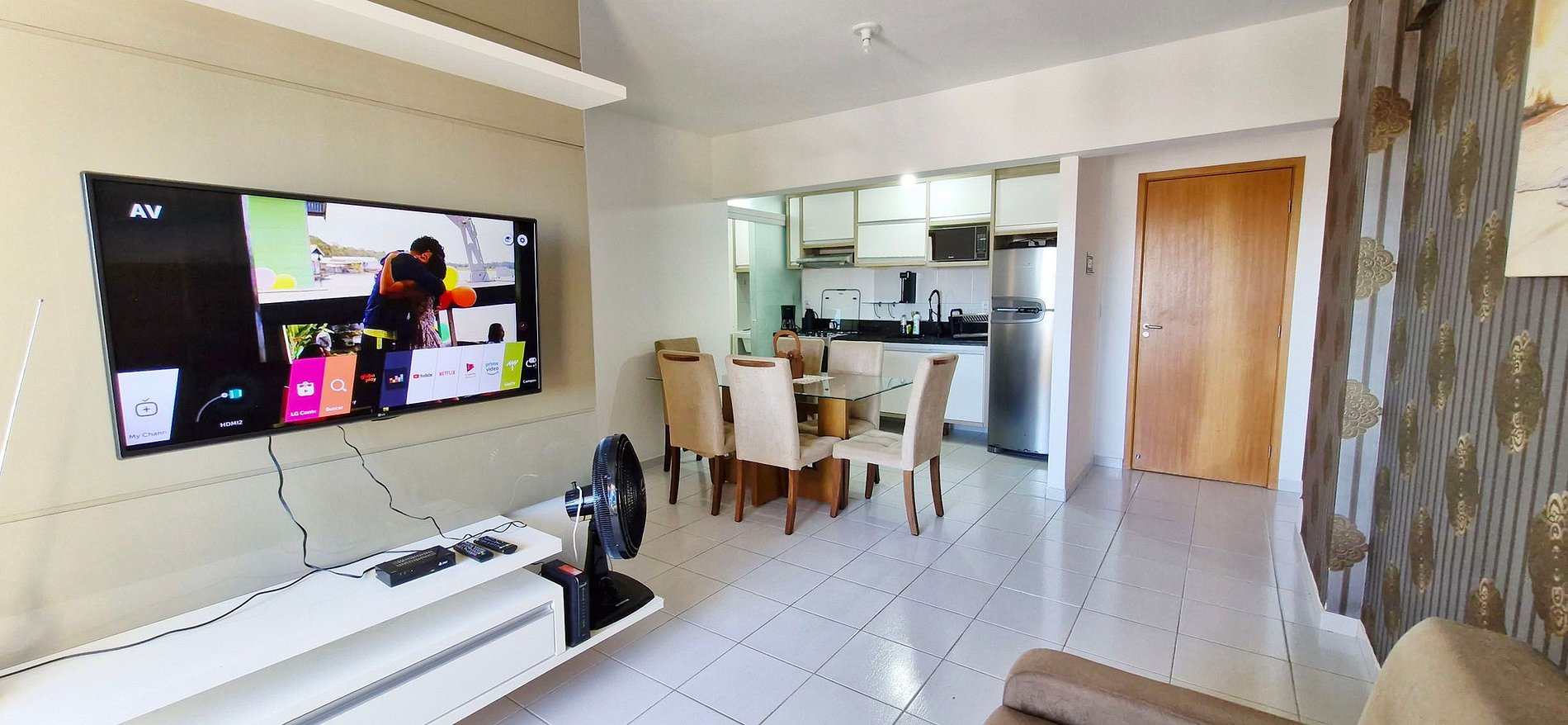 ¡A sólo 8 km del aeropuerto y cerca de la playa de Itapuã! Hay 2 dormitorios con aire acondicionado de ventana, cocina completa, sala con SMART TV y WI-FI, balcón con hamaca. Urbanización cerrada con piscina, gimnasio, parque infantil y conserje 24 horas. Tiene garaje para 2 coches (en fila).