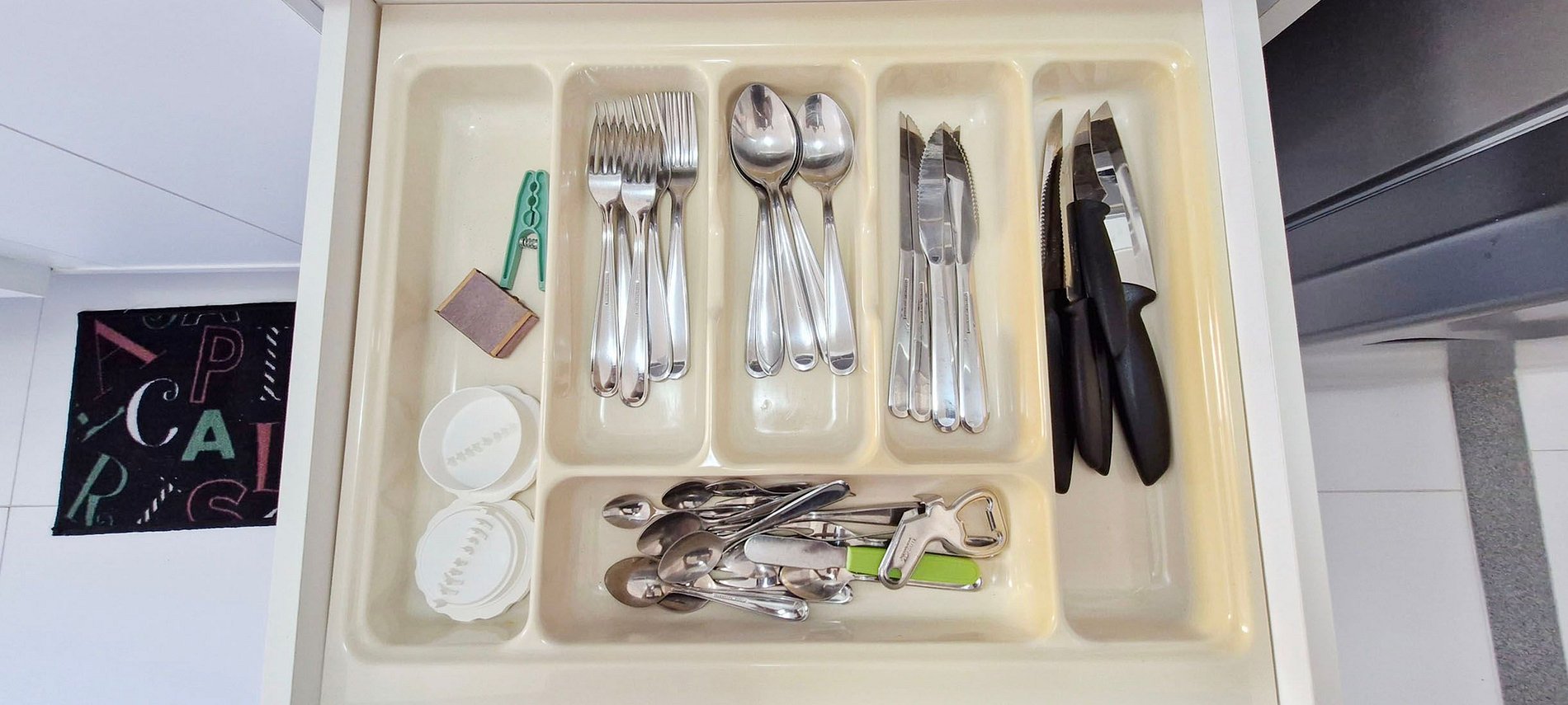 - Cocina completa con estufa, refrigerador duplex, airfryer, licuadora, sandwichera, cafetera eléctrica, termo, batería de cocina, platos, vasos, tazones, cubiertos, recipientes de plástico y utensilios de cocina (ver fotos)