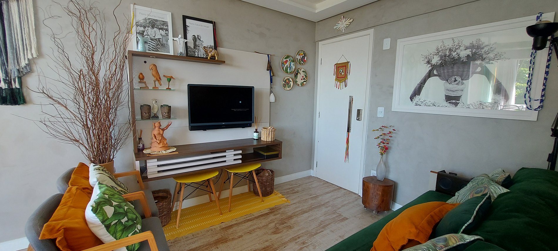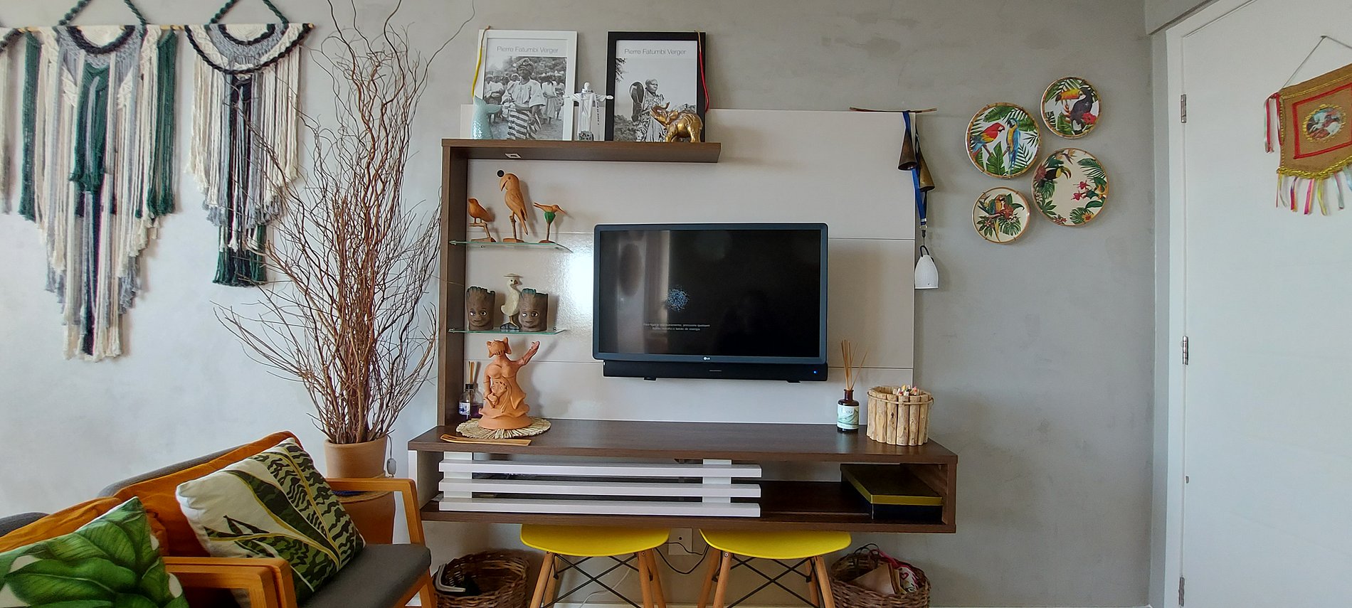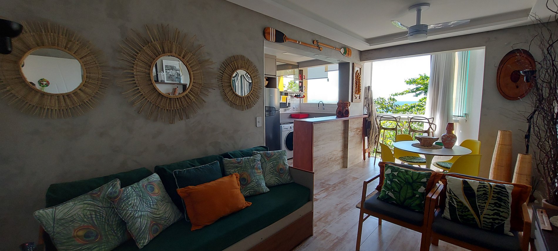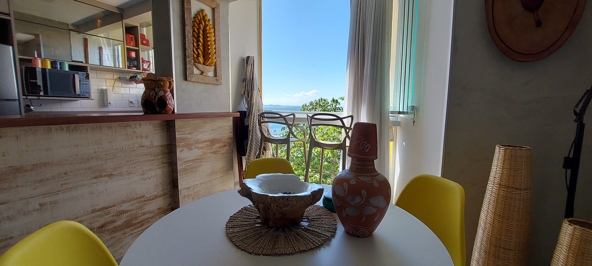 Dormitorio y sala de estar finamente decorados con una fantástica vista al mar de la playa de Barra. ¡Cerca del Farol da Barra! Con cama queen, smart TV en sala y dormitorio, aire acondicionado split, sala y comedor con ventiladores de techo, cocina completa, lavadora, baño cómodo. Espacio para trabajo home office frente al mar e internet 50MB. Un lugar inolvidable!