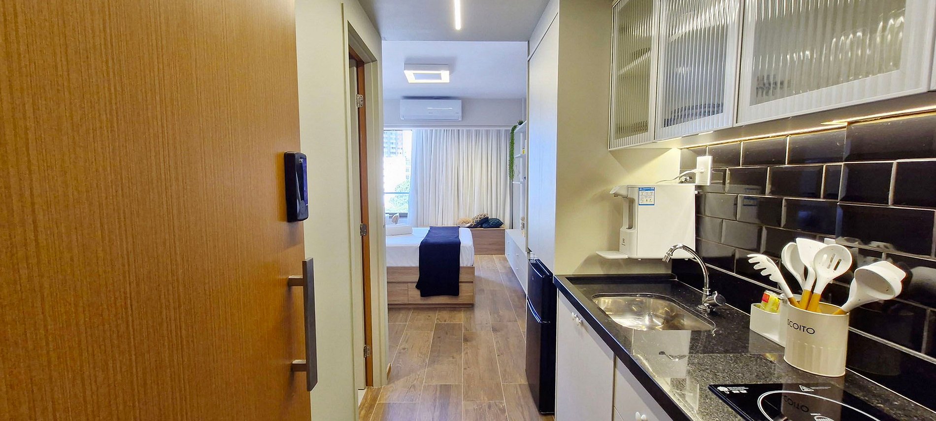 ¡Cerca del centro comercial Barra y del Carnaval de Barra-Ondina! Ático con piscina y gimnasio. Coworking, garaje rotatorio y recepción 24 horas. Lavandería con cargo aparte. Apartamento con cama doble, escritorio de trabajo, smart TV (apps y open TV), WI-FI, aire acondicionado split, cocina.