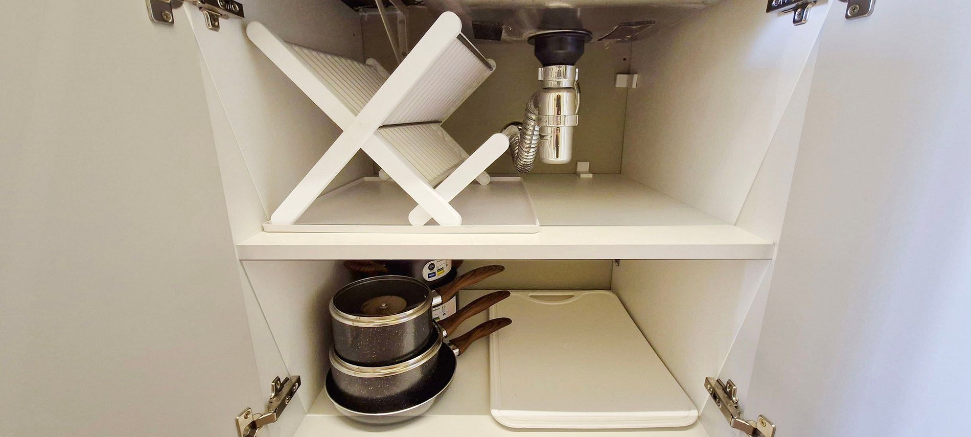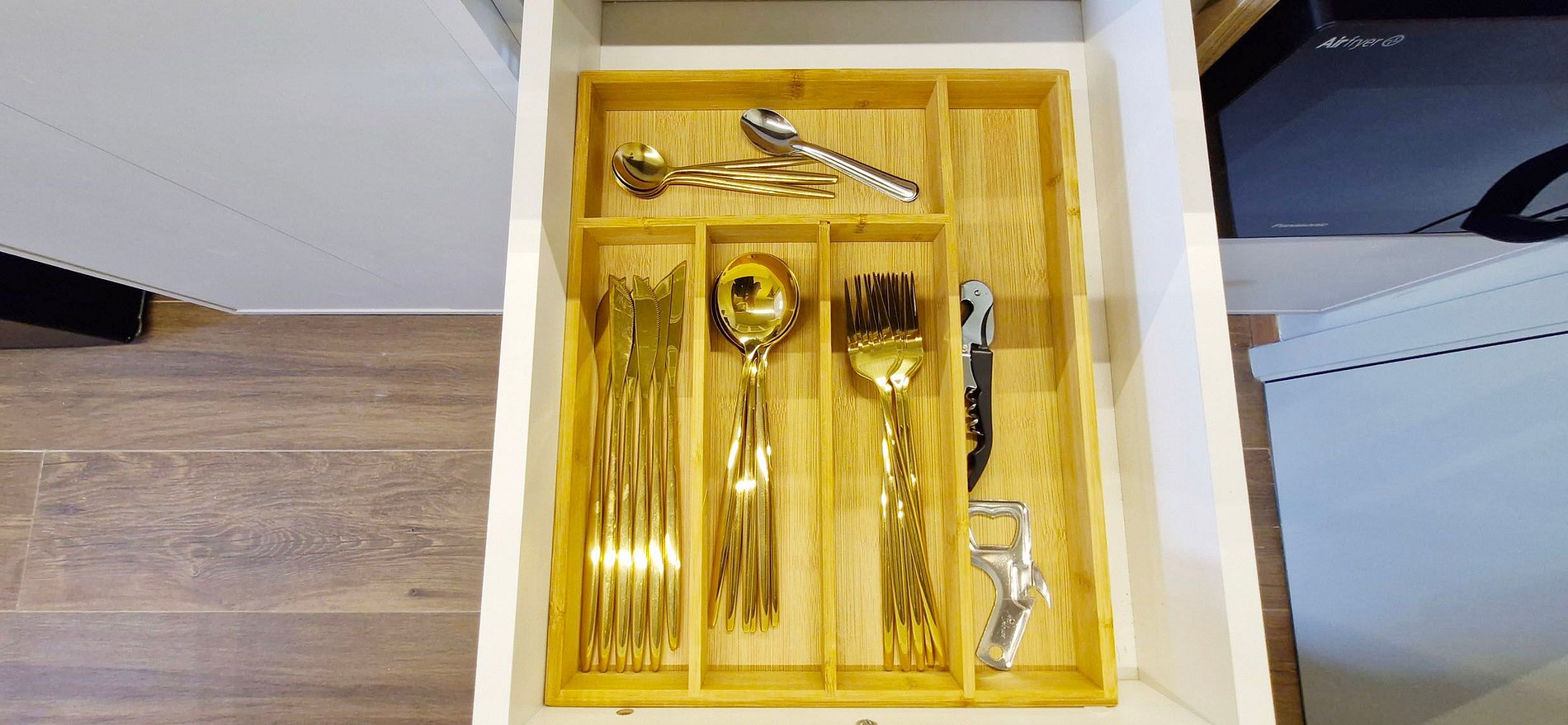 - COCINA: sandwichera, cafetera eléctrica, minibar, termo, licuadora, microondas con airfryer, placa de inducción de dos fuegos, filtro de agua, sartenes, cubiertos, vasos, tazas y diversos accesorios de cocina.