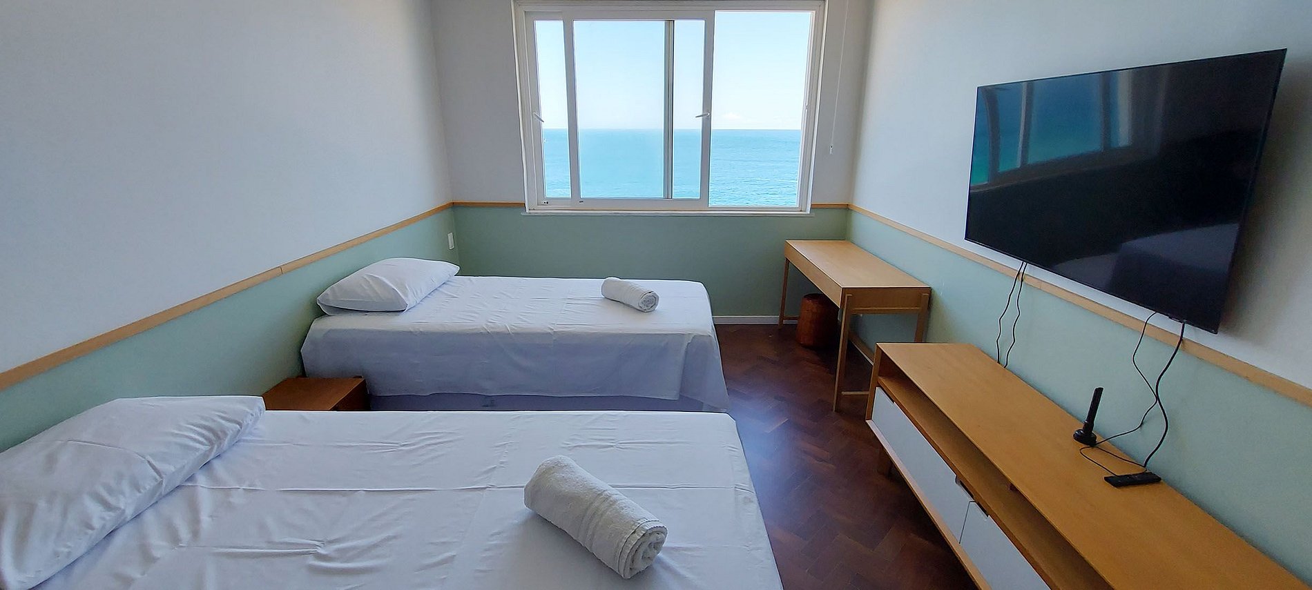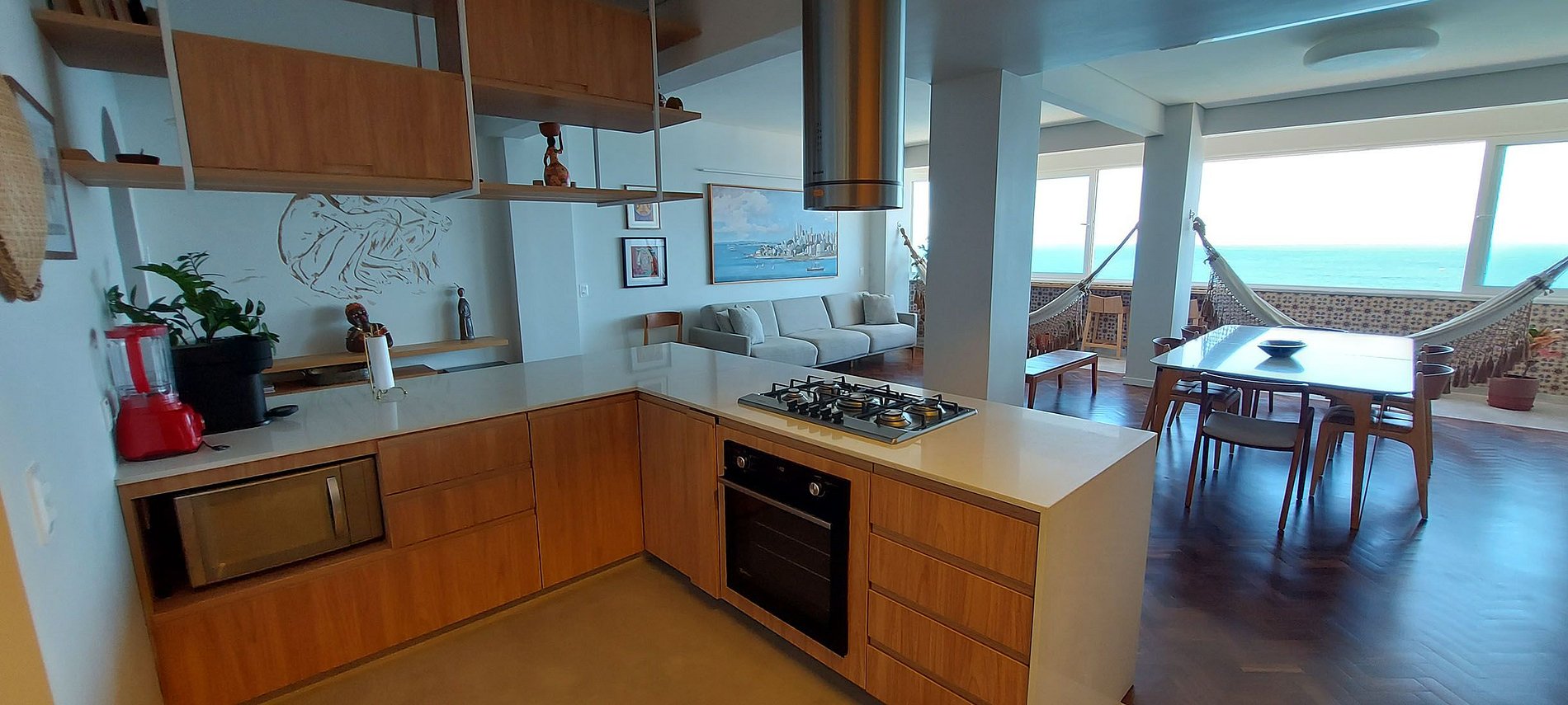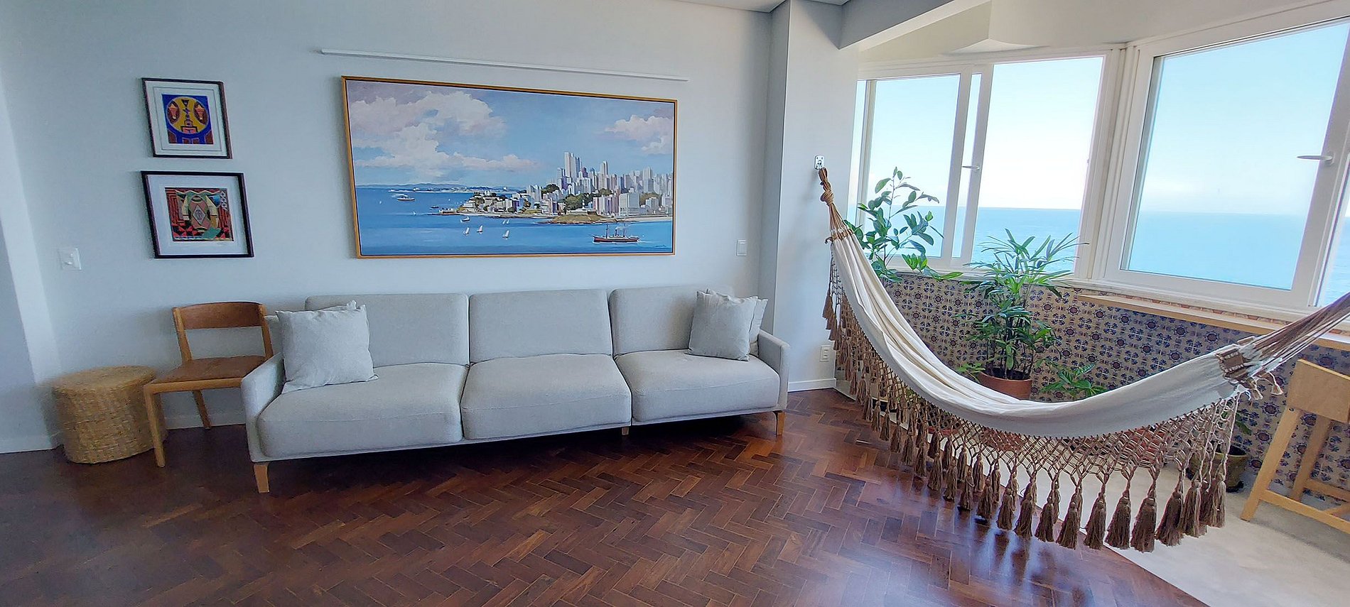 Ap clásico y refinado, justo enfrente del Farol da Barra. Vista completa del Carnaval, justo frente al paso de los tríos. Amplio salón con cocina concepto abierto con 3 aires acondicionados split en la habitación y Smart TV gigante y WI-FI de 150MB. 3 habitaciones con aire acondicionado (2 suites). Vista perfecta de la playa y del Farol da Barra. Edificio con gimnasio, sala de juegos y Memorial de la Ciudad de Salvador. ¡Un lugar diferente e inolvidable!