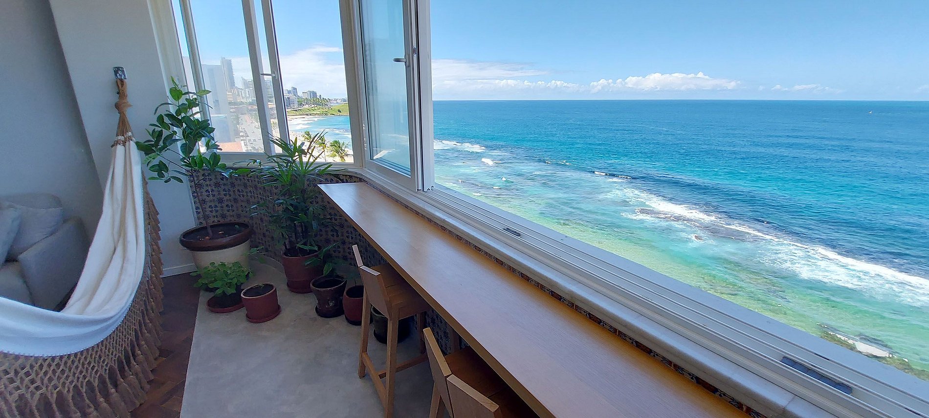 Ap clásico y refinado, justo enfrente del Farol da Barra. Vista completa del Carnaval, justo frente al paso de los tríos. Amplio salón con cocina concepto abierto con 3 aires acondicionados split en la habitación y Smart TV gigante y WI-FI de 150MB. 3 habitaciones con aire acondicionado (2 suites). Vista perfecta de la playa y del Farol da Barra. Edificio con gimnasio, sala de juegos y Memorial de la Ciudad de Salvador. ¡Un lugar diferente e inolvidable!