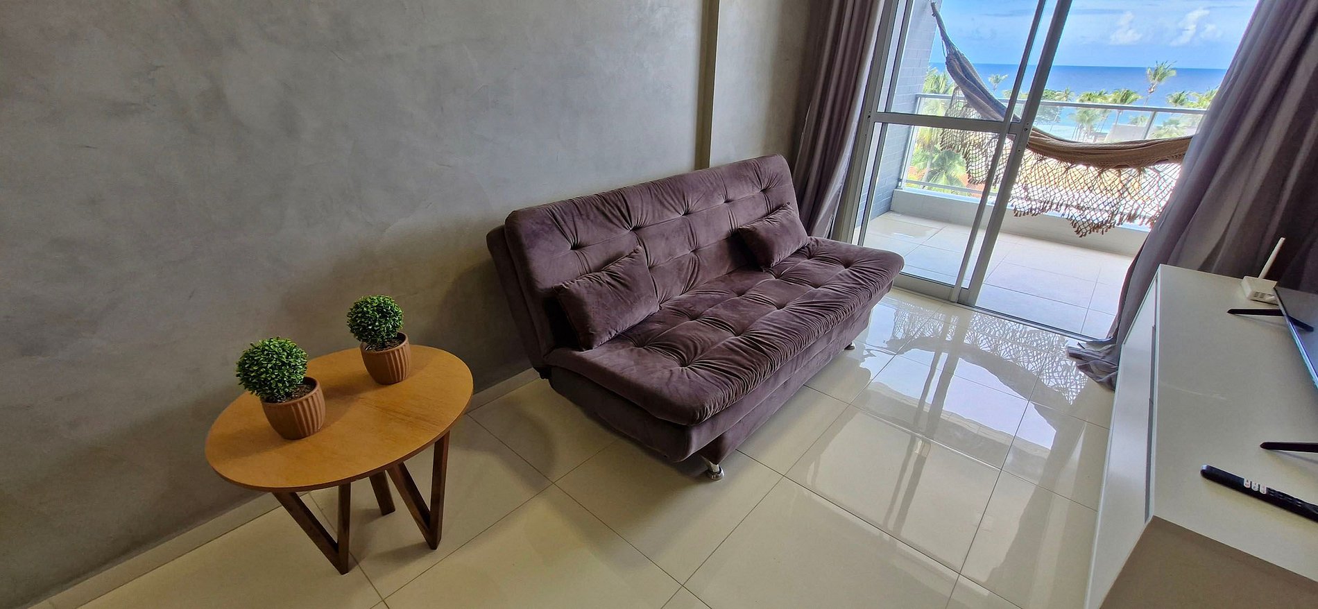Apartamento con sofá cama individual, smart TV, balcón con hamaca y vista al mar, suite con cama de matrimonio y colchón individual (para poner en el suelo), cocina