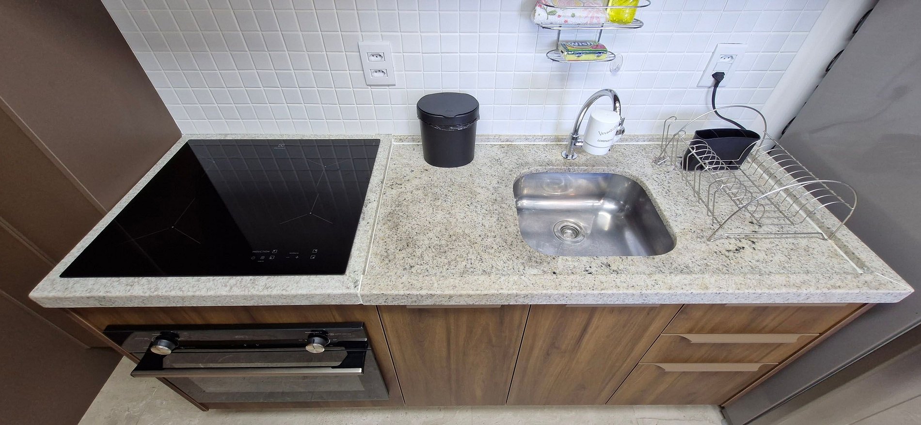 - Mesa con 4 sillas, refrigerador duplex, horno eléctrico, cocina de inducción con 4 quemadores, filtro de agua, microondas, sandwichera, licuadora, cafetera eléctrica, sartenes, cubiertos, platos, utensilios básicos de cocina y plancha.