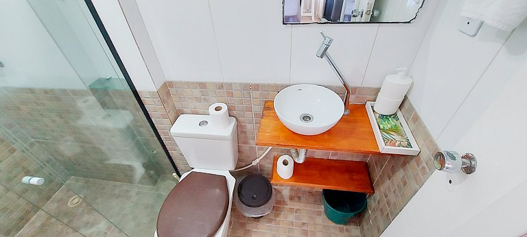 • No se pueden tirar residuos sólidos al inodoro (incluido el papel higiénico), le pedimos que utilice el contenedor de basura provisto. De lo contrario, el inodoro puede obstruirse y cobramos R$ 150 por desatascarlo.