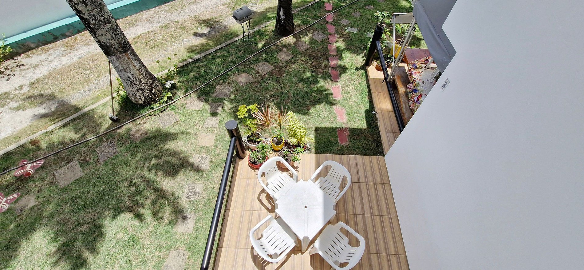 BALCÓN: mesa de plástico con 4 sillas, barbacoa de acero.