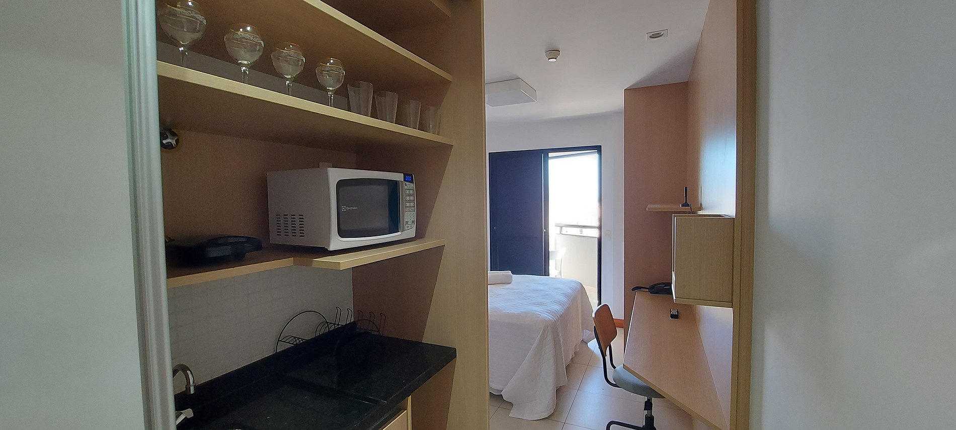 - Armario, minibar, plancha, fregadero, microondas, cafetera eléctrica, sandwichera