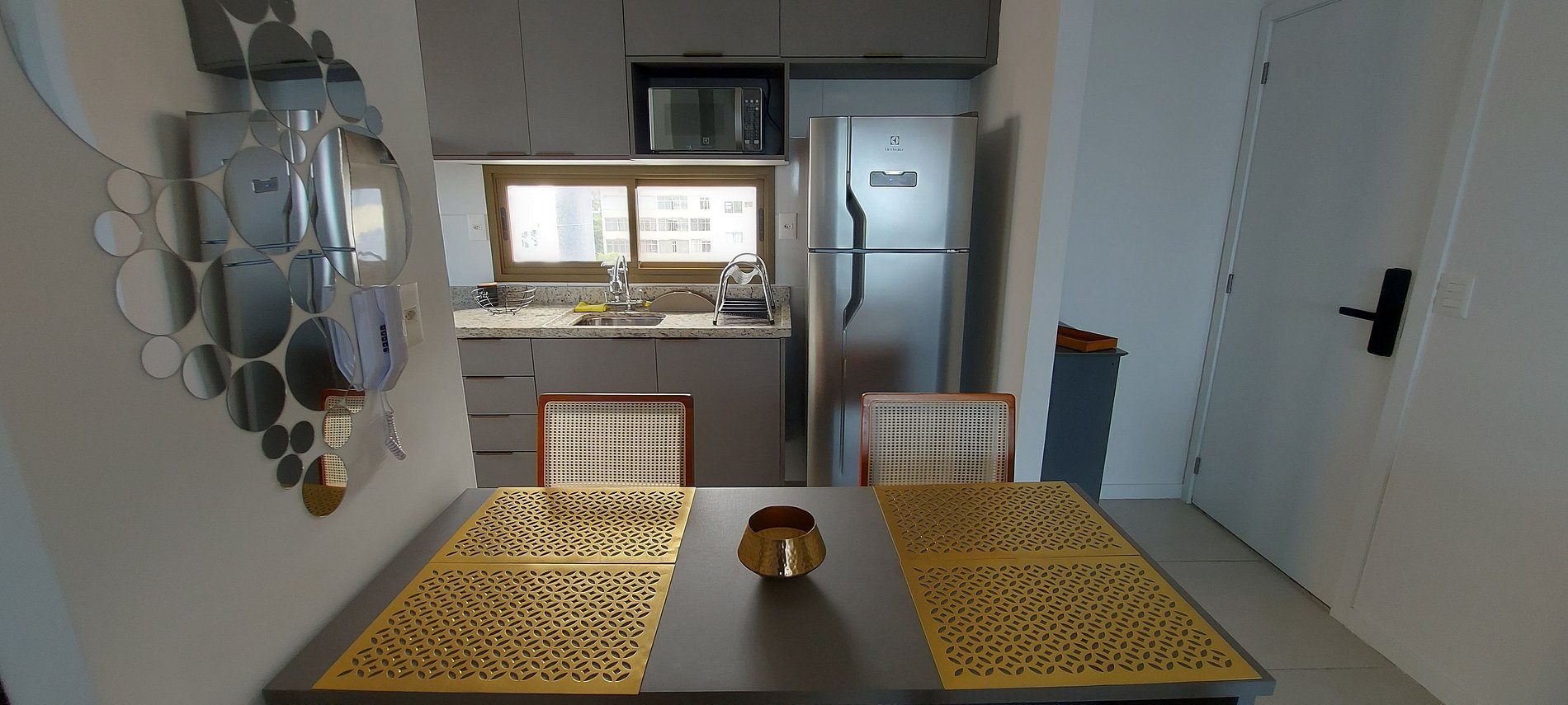 - Cocina completa con filtro de agua, licuadora, cuscúsera, cafetera eléctrica y de cápsulas, airfryer, anafe de 2 fuegos, heladera dúplex, microondas, horno eléctrico