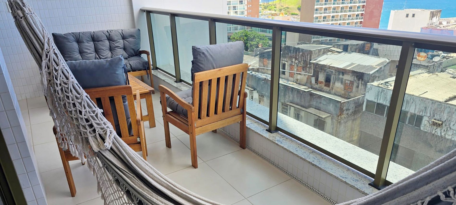 ¡Hermoso apartamento con una increíble vista al mar en un refinado condominio en Barra! ¡Cerca del circuito del Carnaval de Barra-Ondina! Amplio salón con aire acondicionado split, sofá cama doble, SMART TV, WI-FI 300MB, dormitorio con cama queen y aire acondicionado split, cocina equipada. Edificio con piscina, gimnasio, garaje con cargador de vehículos eléctricos y recepción 24 horas. ¡Una experiencia inolvidable!
