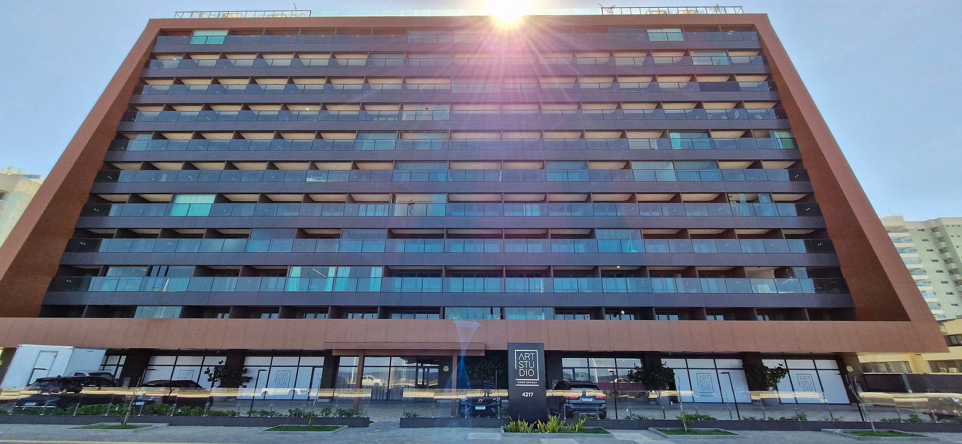 Encantador estudio con balcón, en un edificio nuevo lleno de comodidades en Armação. ¡Frente a la playa y cerca del Centro de Convenciones!