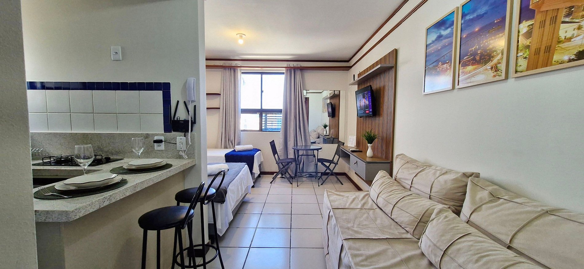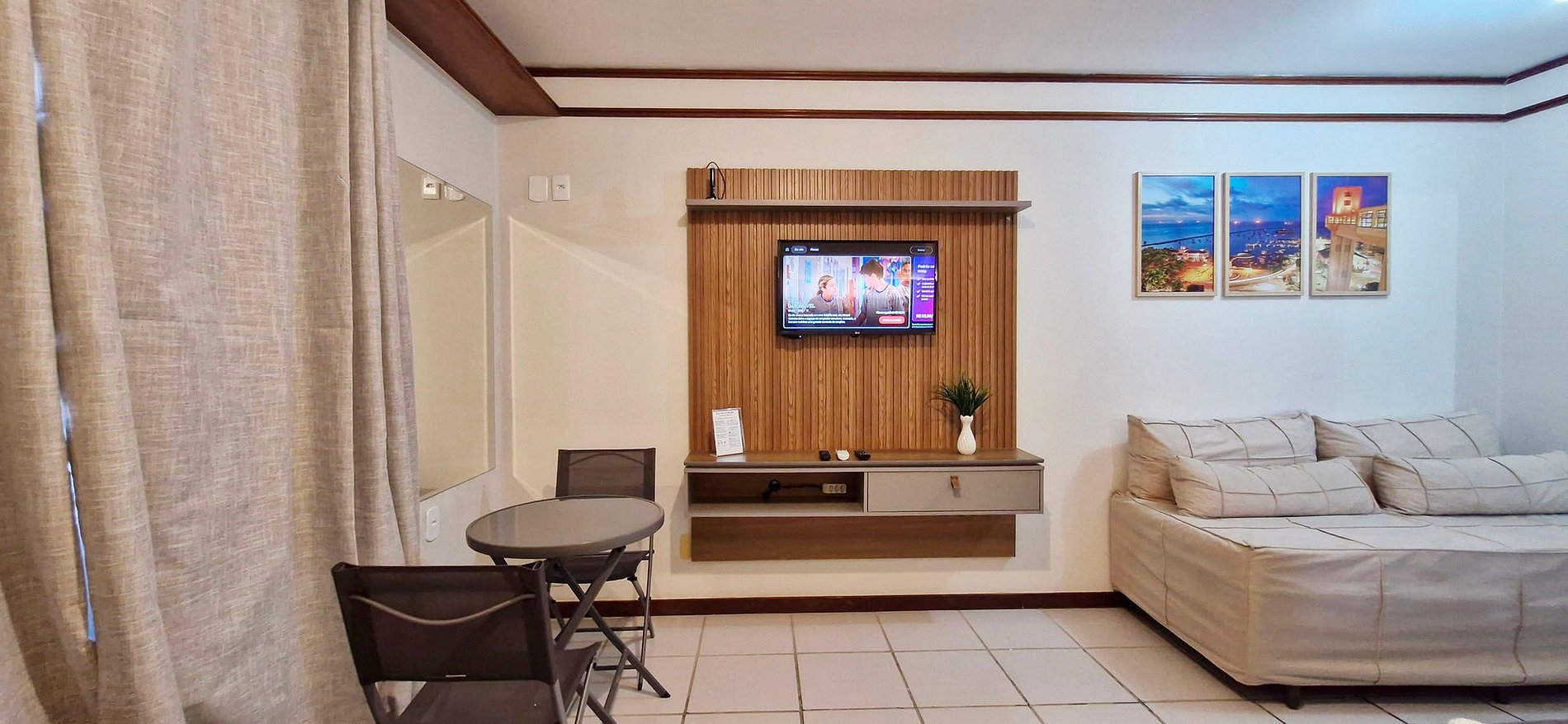 Apartamento para 4 personas cerca de la playa de Ondina y del zoológico. ¡Excelente ubicación! Cuenta con cocina completa, aire acondicionado split, Smart TV, mesa con dos sillas, cama doble, cama individual y sofá cama individual (ver fotos antes de reservar).