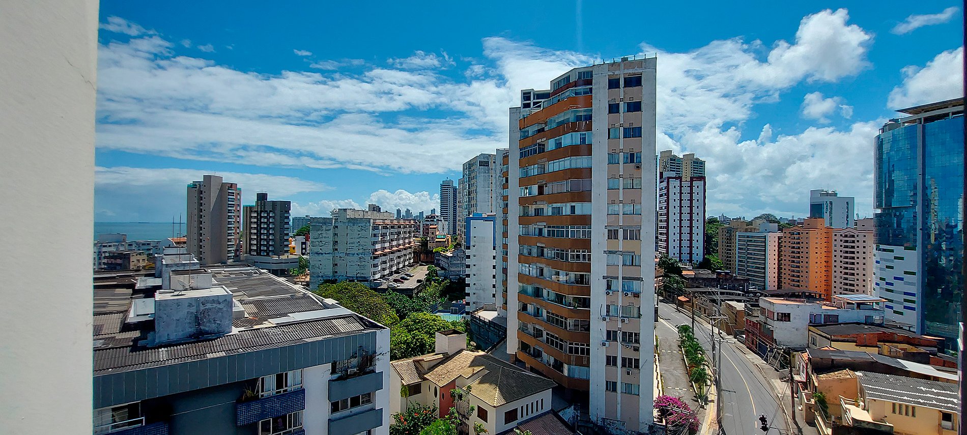 Apartamento de dormitorio y salón, en octavo piso, con balcón y vistas al mar del Rio Vermelho. Salón con smart TV, WI-FI 200MB, cocina completa. Aire acondicionado en salón y dormitorio. Zona de lavandería con lavadora y tendedero. Está a sólo unos metros del famoso acarajé da Dinha y de Vila dos Pescadores.