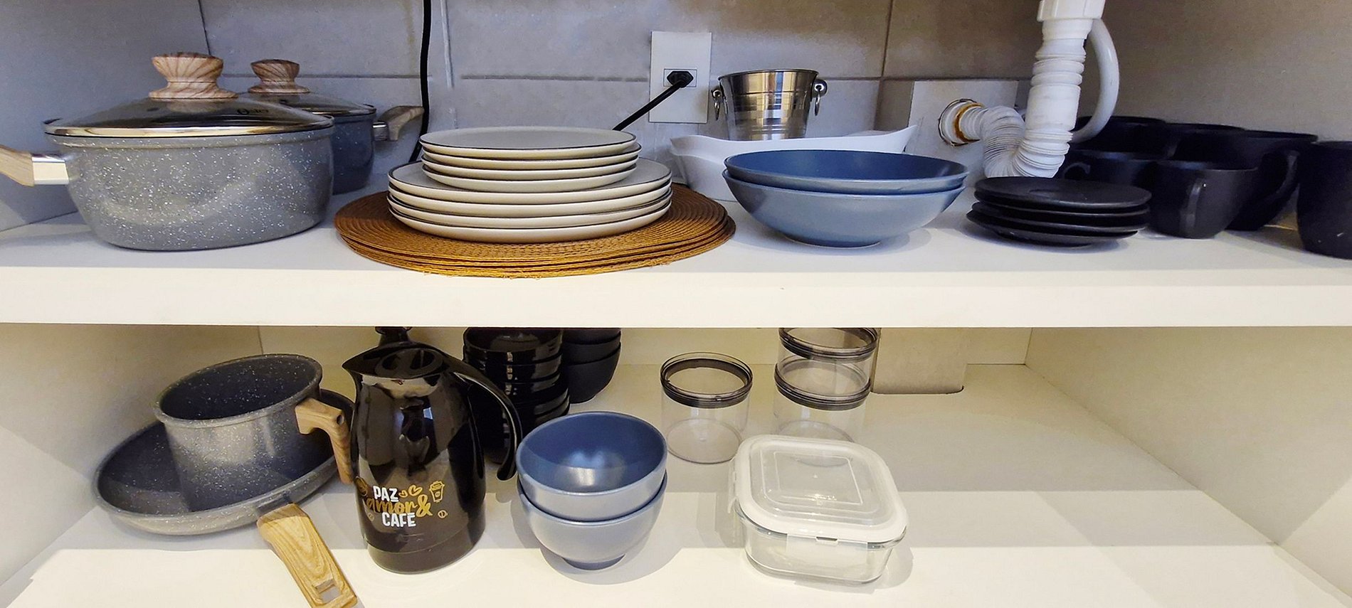 - COCINA: Frigorífico de dos puertas, filtro de agua, sandwichera, horno eléctrico, cafetera eléctrica, termo, licuadora, microondas, placa de inducción de dos fuegos, ollas, sartenes, cubiertos, vasos, tazas y diversos accesorios de cocina, además de tendedero.