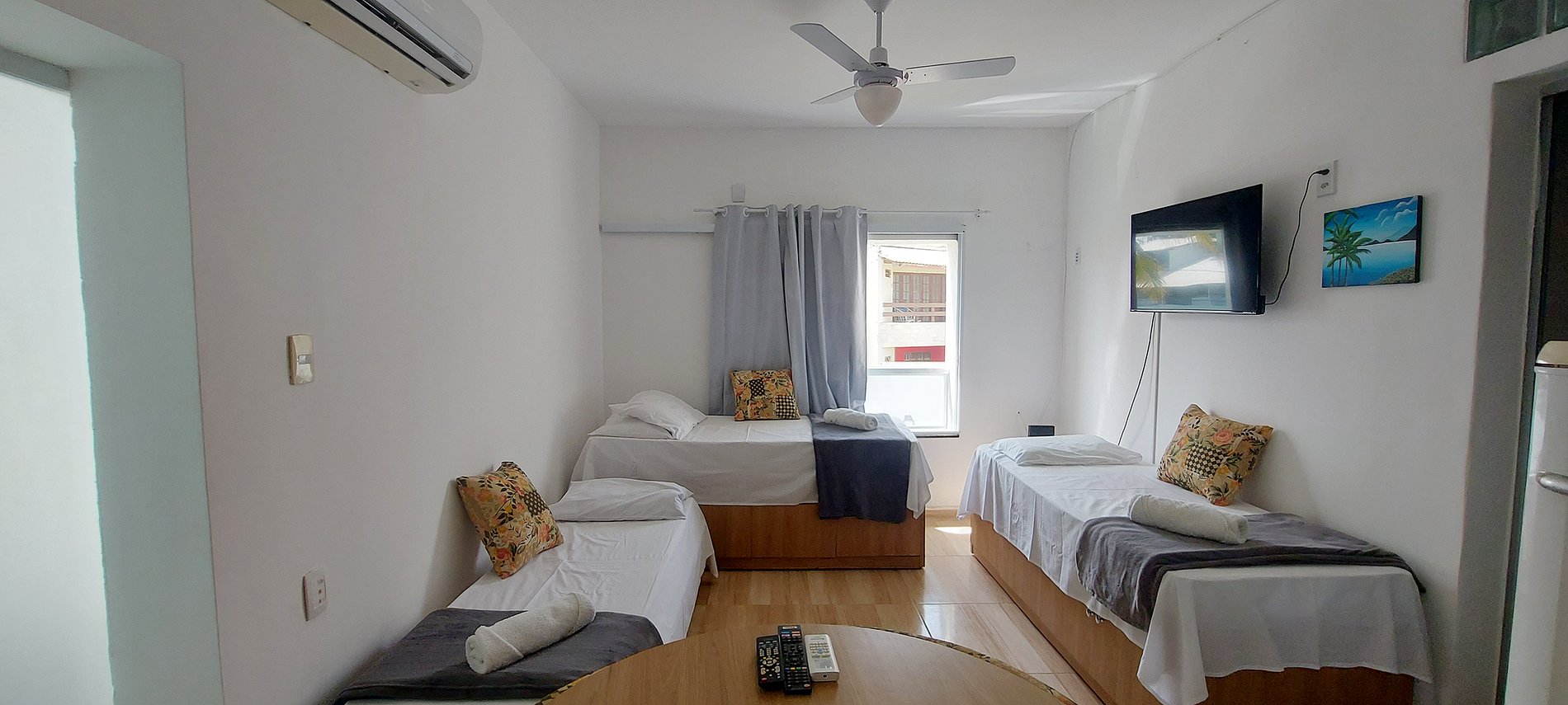 Condominio residencial sencillo con salida directa a la playa, estacionamiento, asador colectivo. Apartamento con vista lateral al mar. Cuenta con smart TV, WIFI 60MB, aire acondicionado split y ventilador de techo.