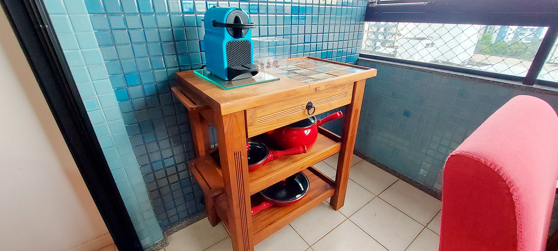 - Cocina con refrigerador duplex, estufa de dos fuegos, alacenas, microondas, purificador de aire, filtro de agua, horno eléctrico, sandwichera, licuadora, tostadora, palomita, cuscús, olla a presión, cafetera, tetera, termo, exprimidor de frutas y Artículos básicos de cocina, mesa pequeña con dos taburetes.