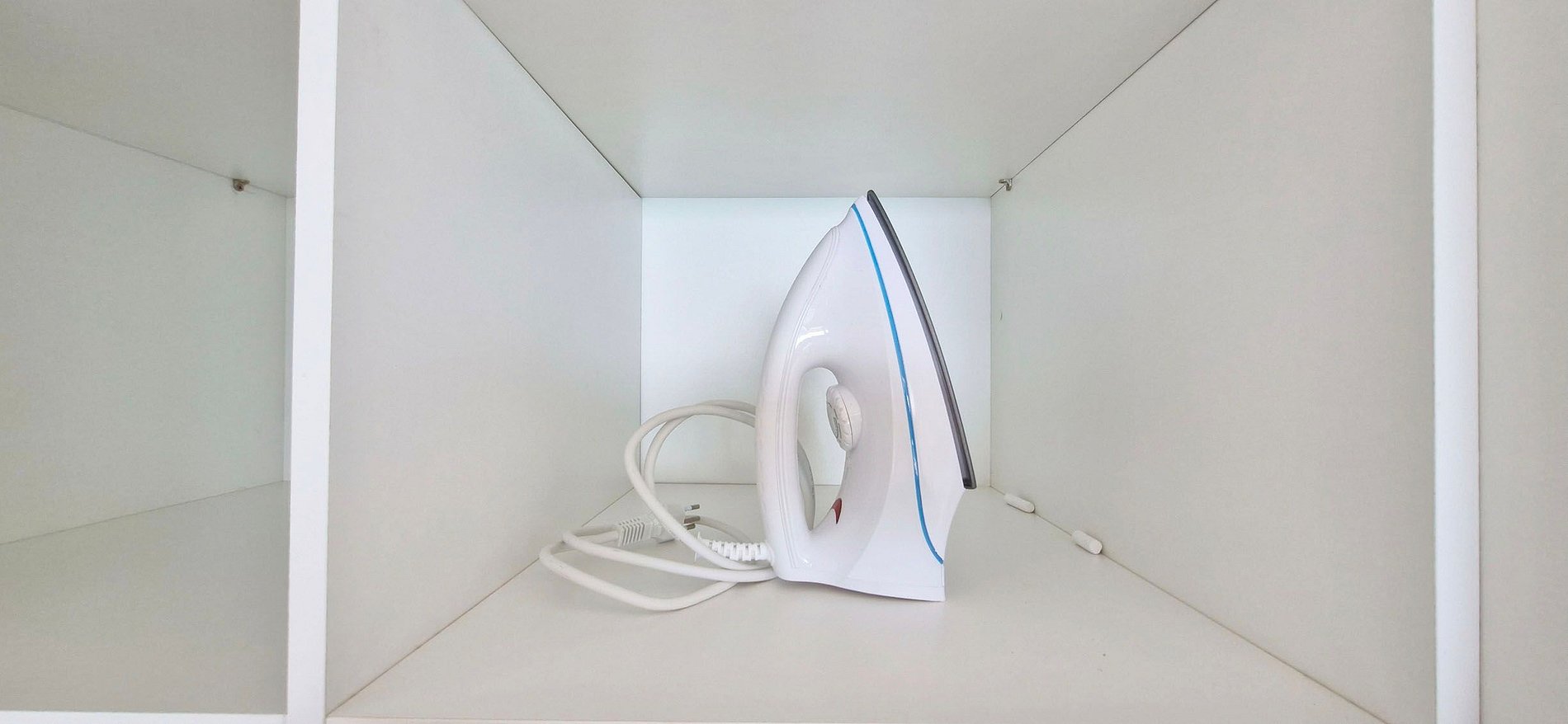 - Zona de lavandería con fregadero, lavadora, plancha, tabla de planchar, tendedero, escoba, trapeador y recogedor.