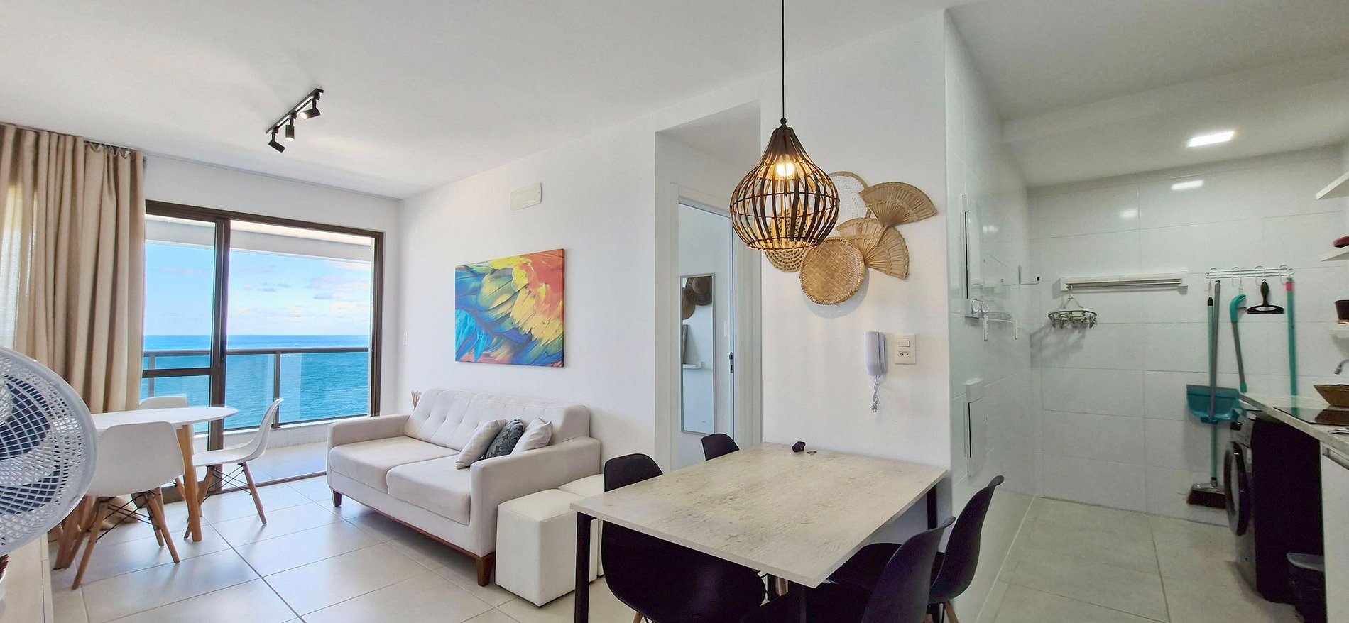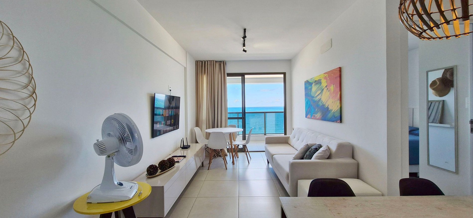 Hermoso apartamento con balcón e increíbles vistas al mar en un elegante condominio en Barra. ¡Cerca del circuito de Carnaval de Barra-Ondina! Amplia sala de estar, mesa con 4 sillas, sofá, Smart TV y wifi. Dormitorio con cama doble, cortinas opacas y aire acondicionado split. Cocina equipada. Edificio con piscina, gimnasio, garaje con cargador para vehículos y recepción 24 horas. ¡Una experiencia inolvidable!
